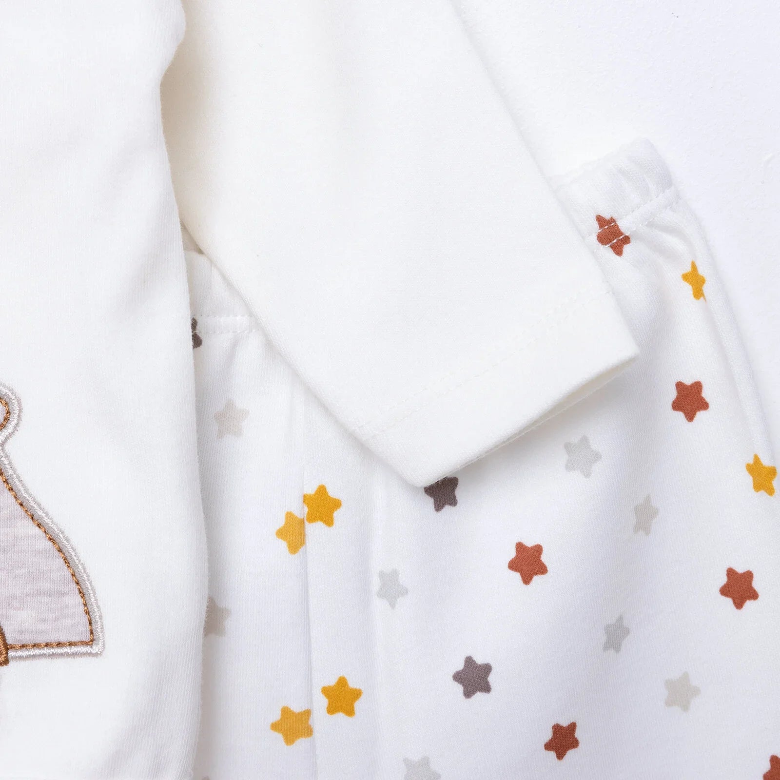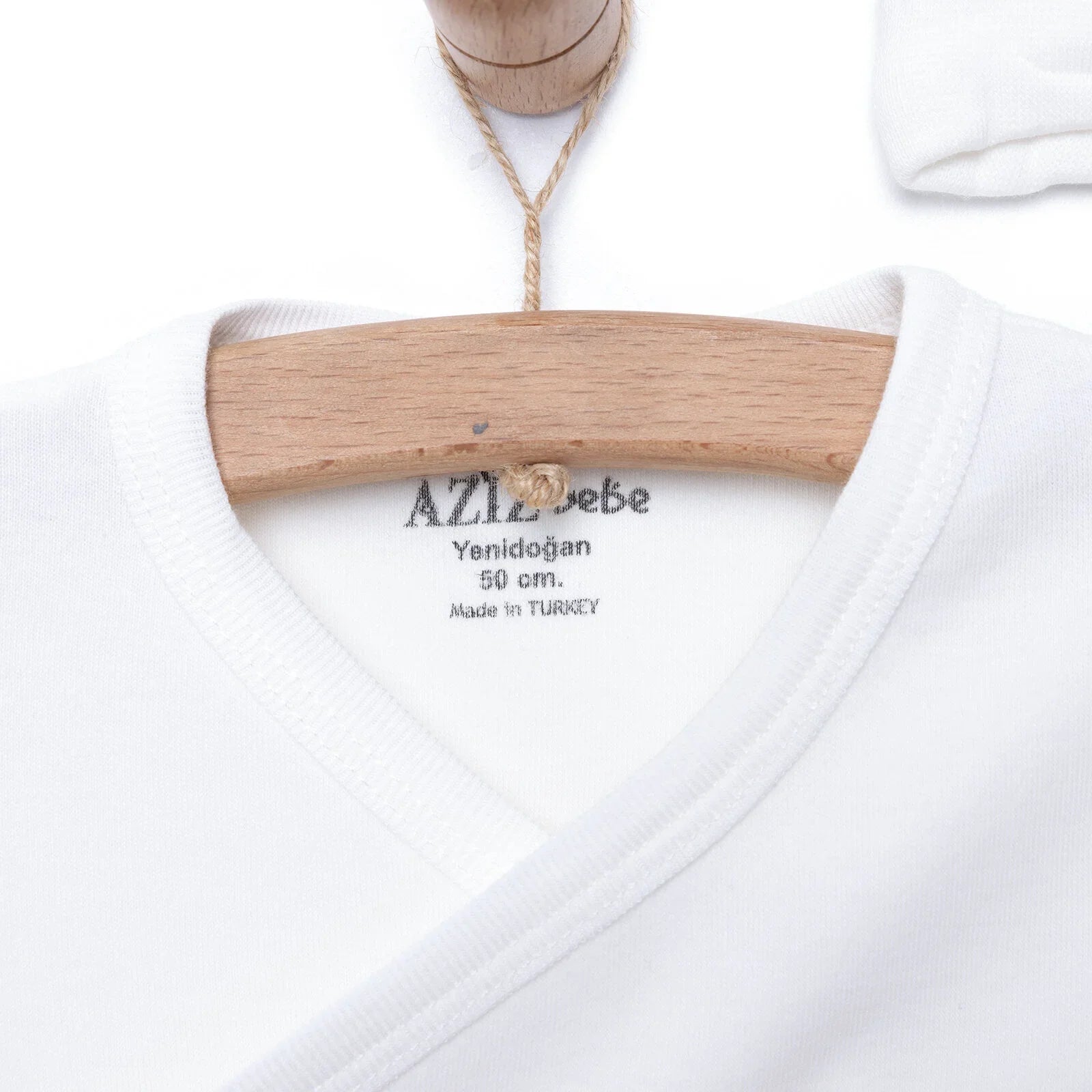 This sweet newborn set offers a soft touch to your baby’s delicate skin with its cotton fabric. Its breathable material and comfortable fit make it a practical yet stylish choice from the very first days.