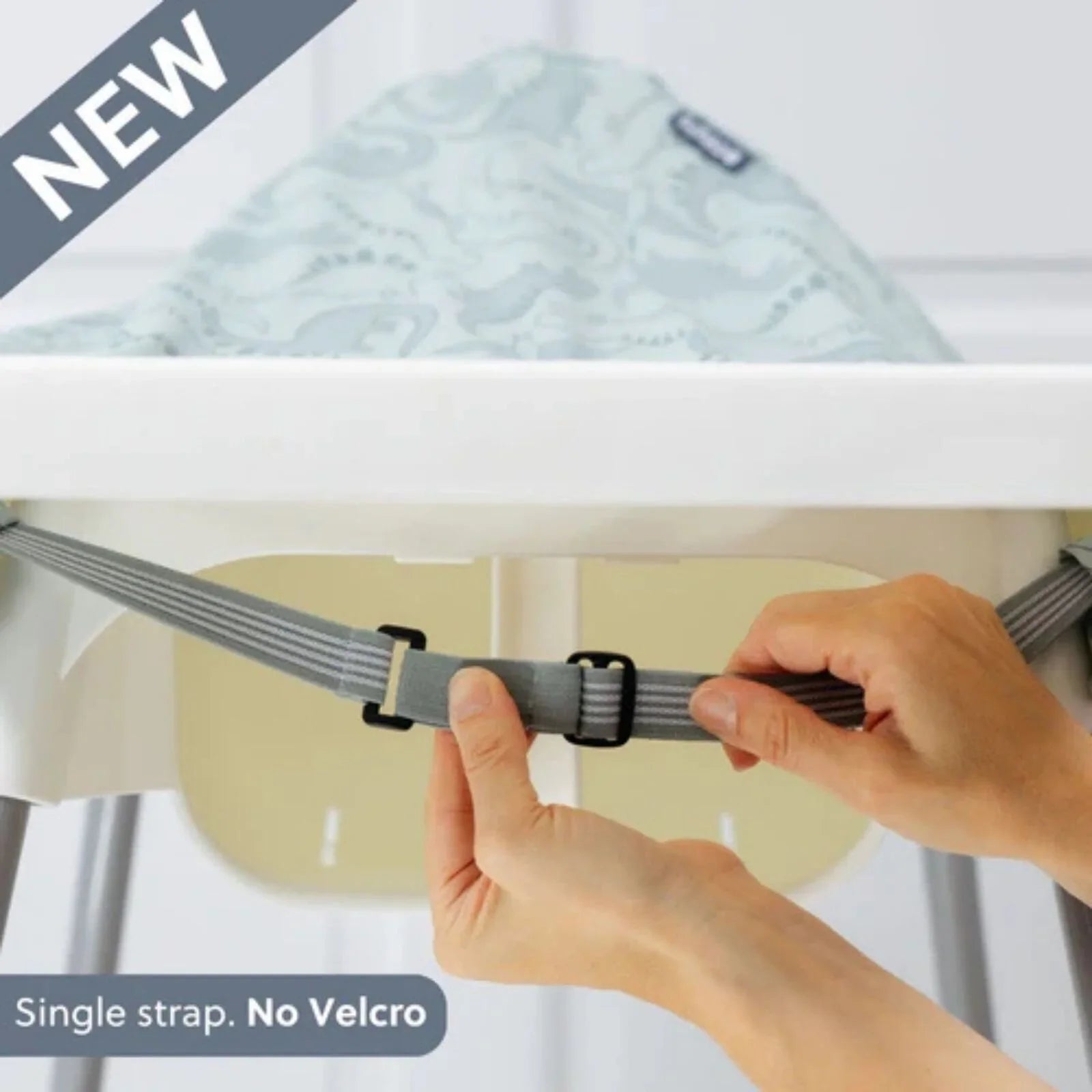 • Attachment Mechanism: Secure single-loop strap system attaches to the highchair, providing full protection for clothes.