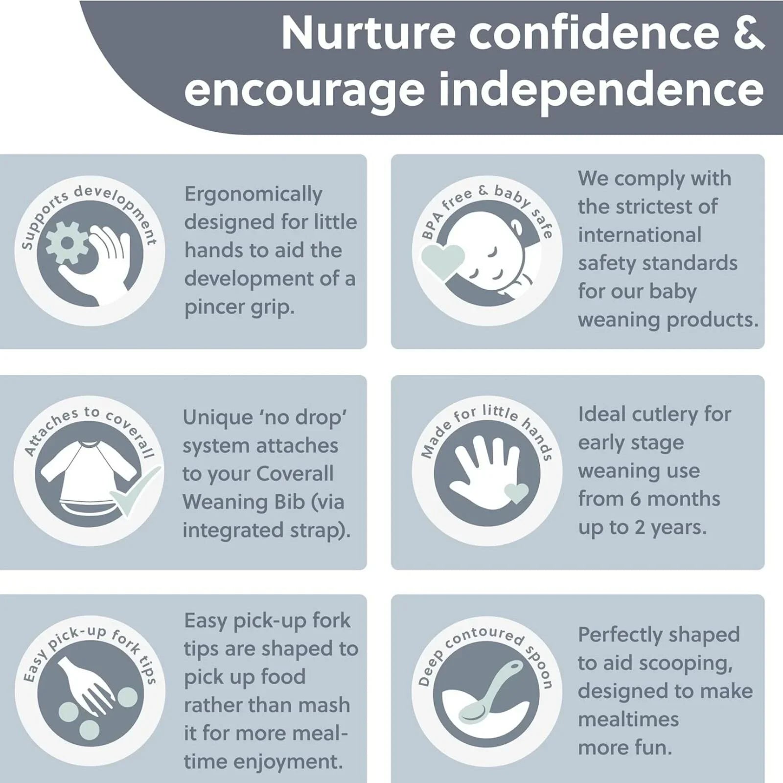 Perfect for Weaning: Designed for babies aged 6 months and up, ideal for early-stage weaning and independent eating, supporting little ones well beyond the early years.