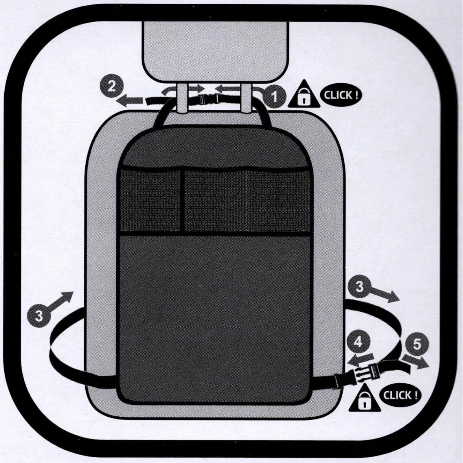 It is easy to set up. The guard with a sturdy steel frame easily attaches around any headrest for a secure seat. It is the perfect accessory for children sitting facing forward. It protects the back of the seat from dirty shoes, keeps it clean and has small storage pockets. It makes your car look clean and tidy. In this way, you can keep all your needs with you in an orderly and tidy manner.