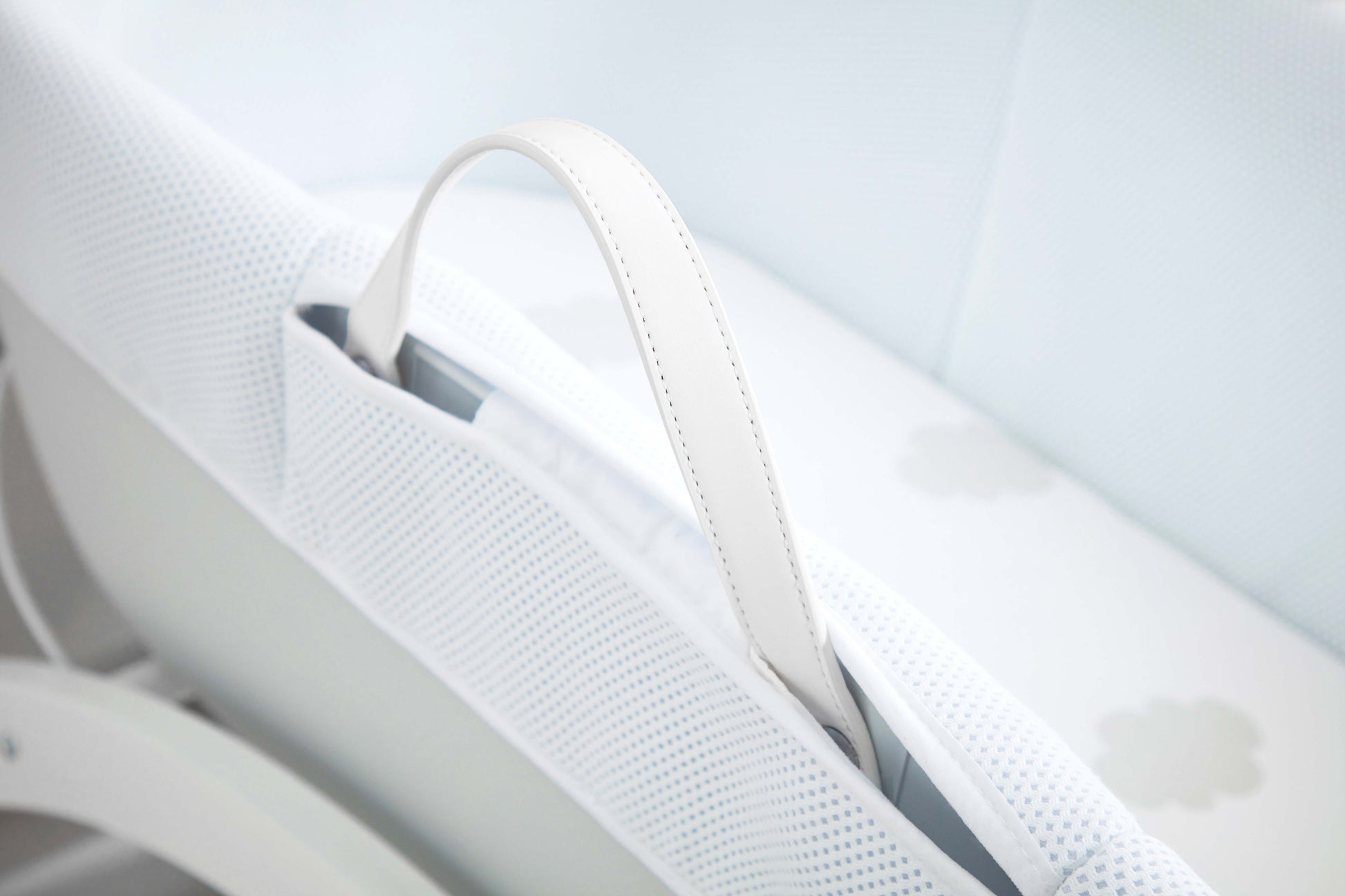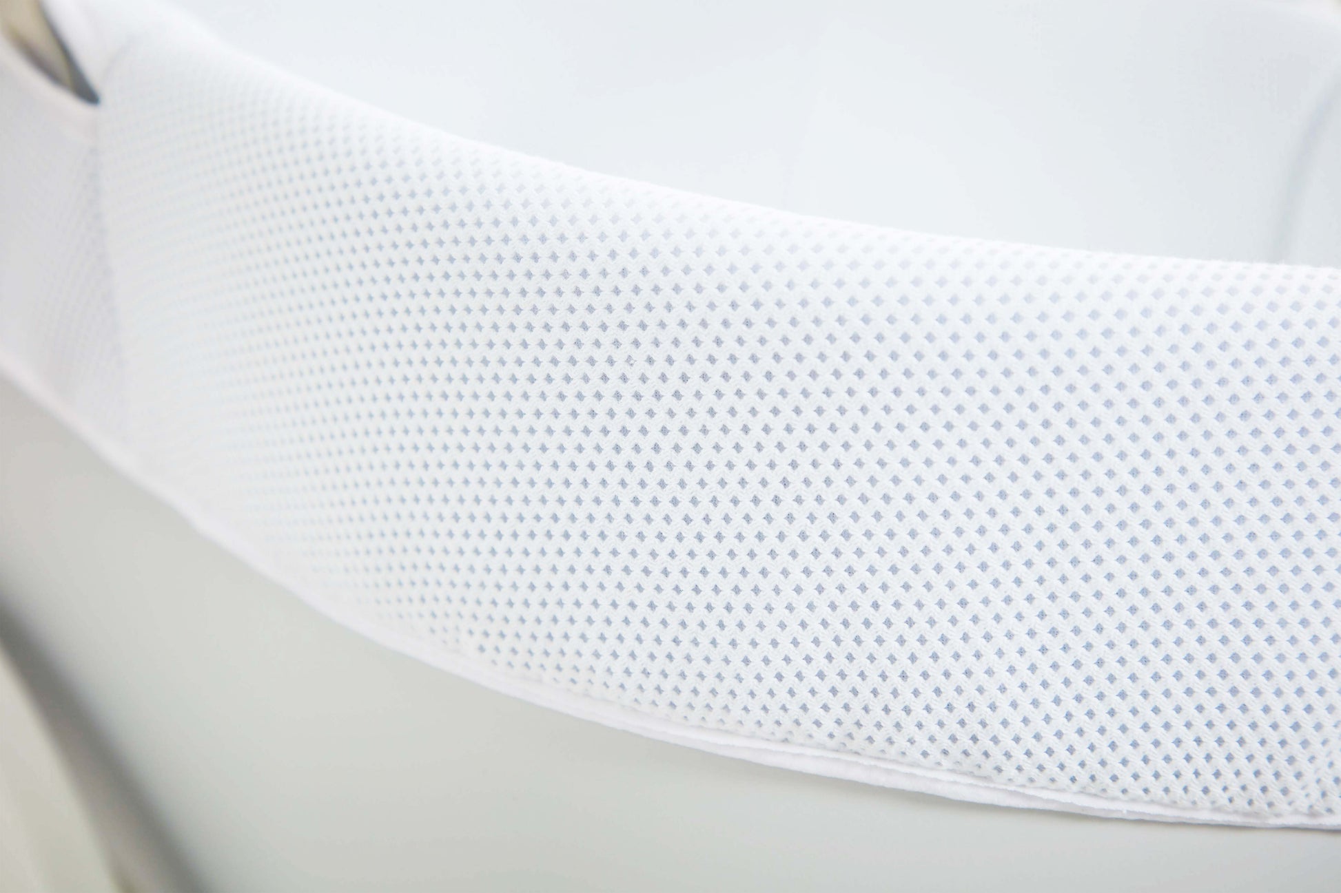 Full baby sleep system. Ventilated base with breathable 3D mesh fabric. Hypoallergenic core that wicks away moisture. With Curve stand. Use in high level fixed position or as low level rocker.