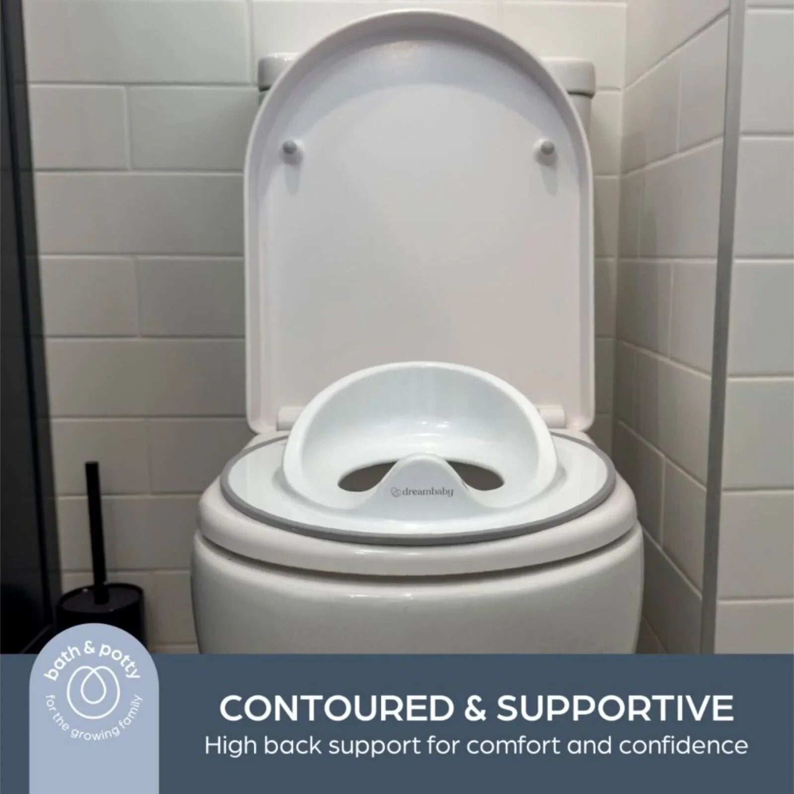 Make toilet training easier and more comfortable with the Dreambaby Toilet Topper. Its ergonomic, contoured design provides little ones with comfort and confidence, while the non-slip base keeps the seat securely in place.