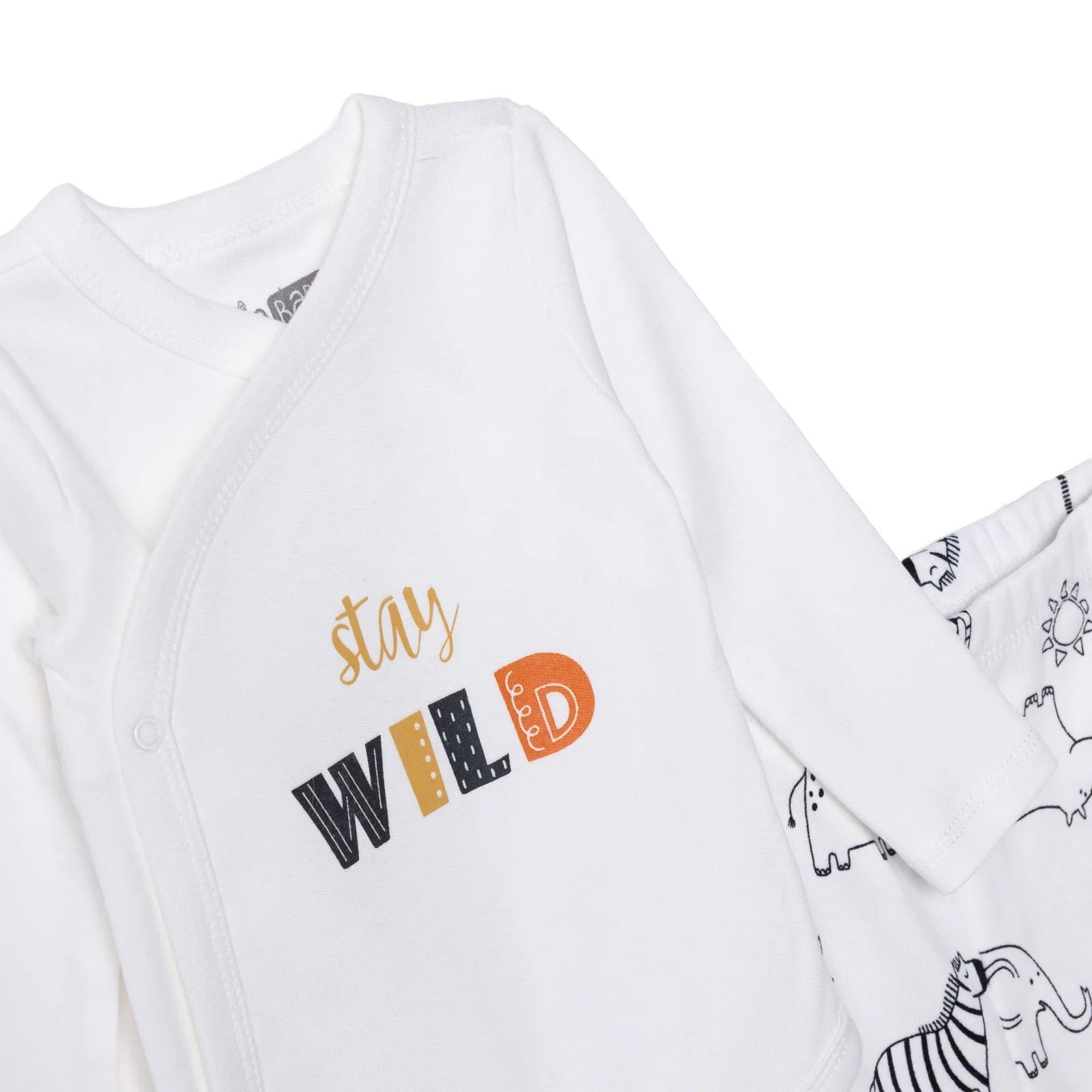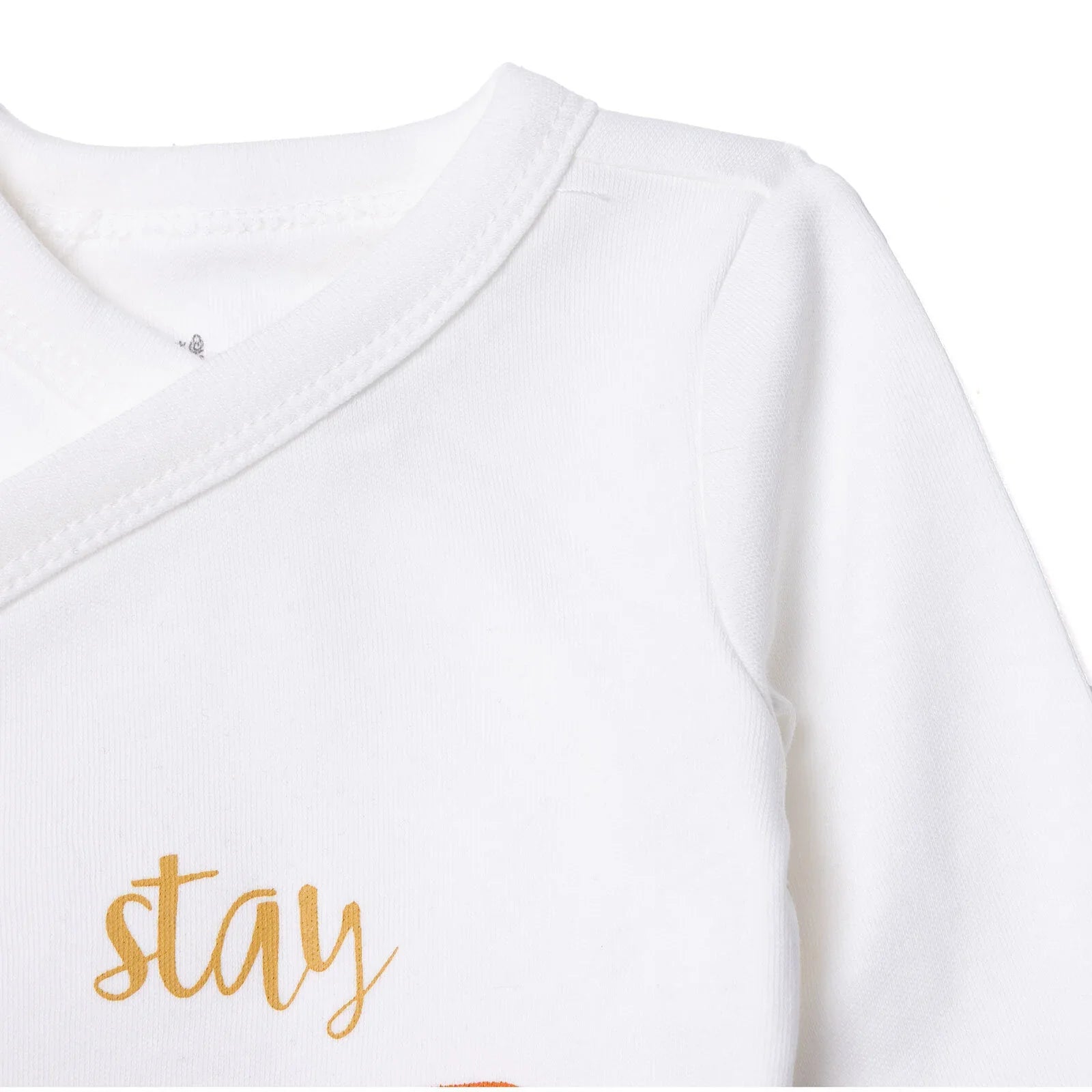 This sweet newborn set offers a soft touch to your baby’s delicate skin with its cotton fabric. Its breathable material and comfortable fit make it a practical yet stylish choice from the very first days.