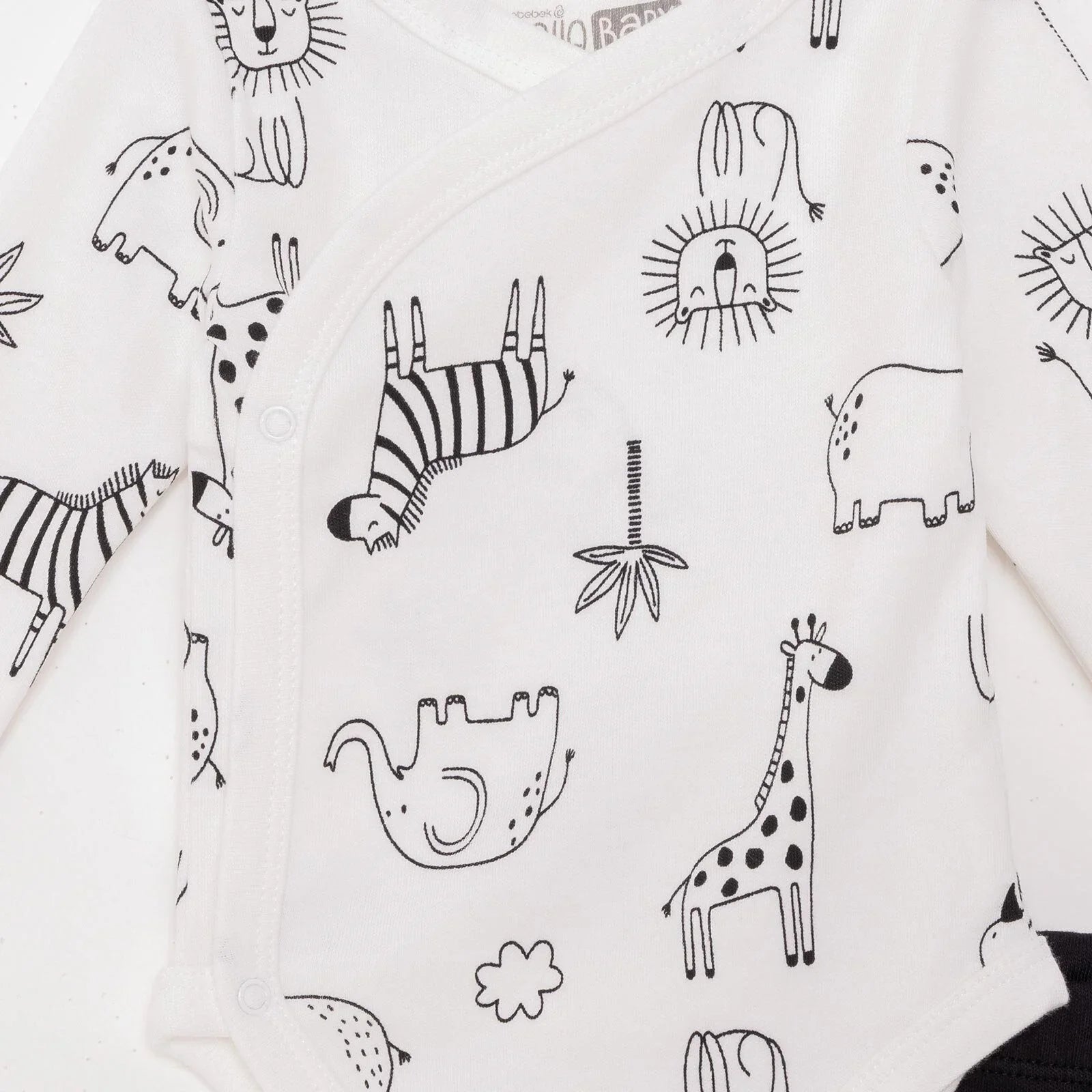 This sweet newborn set offers a soft touch to your baby’s delicate skin with its cotton fabric. Its breathable material and comfortable fit make it a practical yet stylish choice from the very first days.