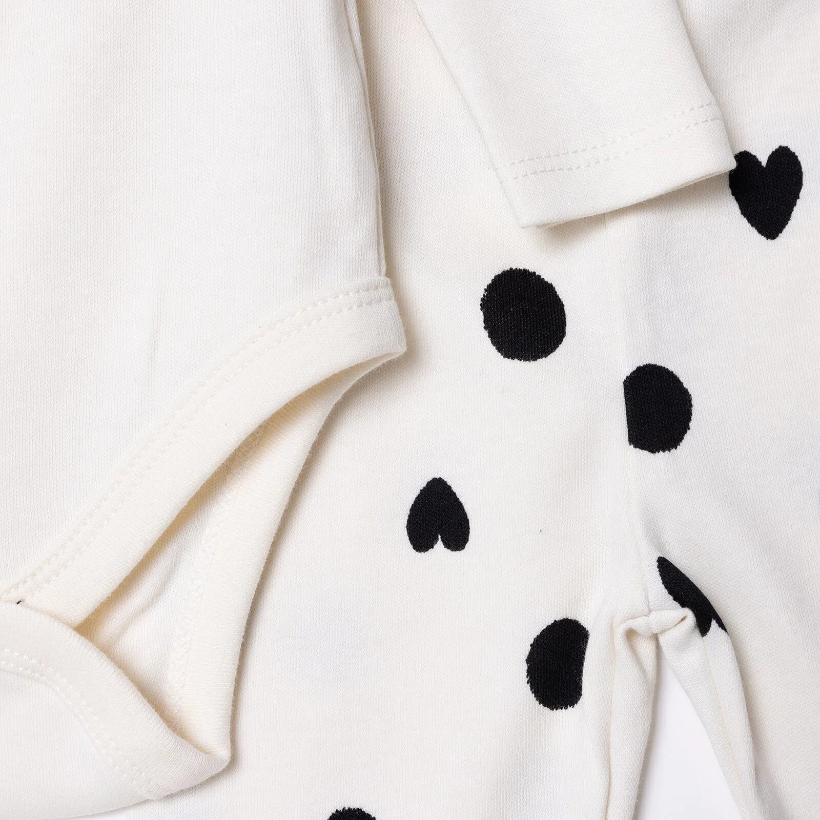 This sweet newborn set offers a soft touch to your baby’s delicate skin with its cotton fabric. Its breathable material and comfortable fit make it a practical yet stylish choice from the very first days.