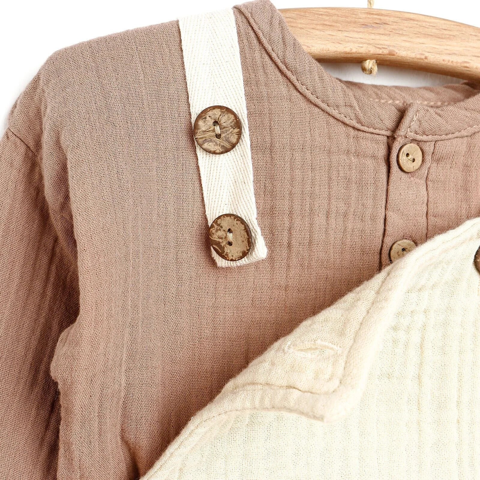 HelloBaby Newborn Muslin Overalls-Sweatshirt - Beige