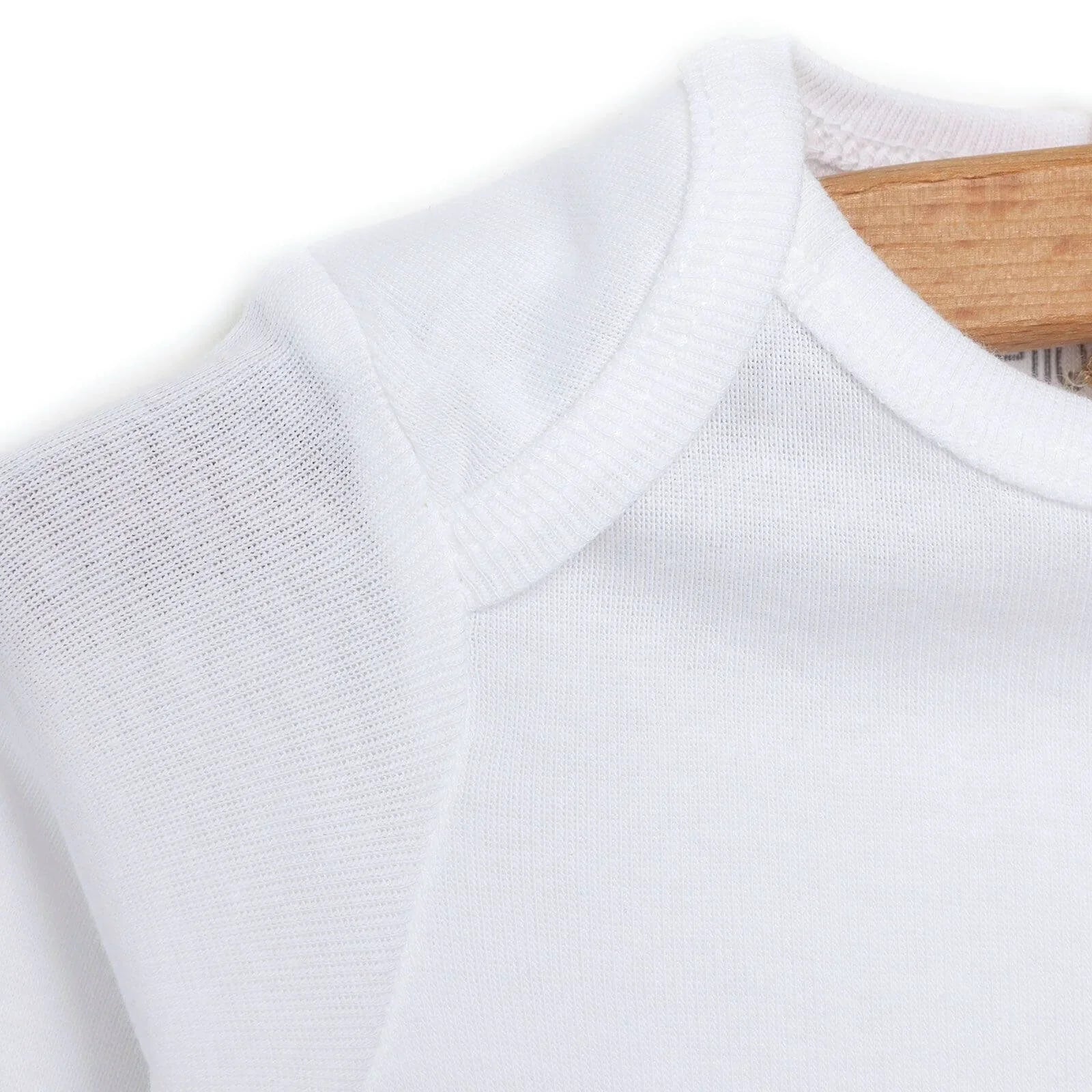 Our baby bodysuits are made from high-quality materials and are created with your child's comfort in mind. Your baby will be cosy and at ease thanks to the soft, breathable fabric, and the long sleeves will keep them extra warm on chilly days and nights. Your baby may look stylish while also feeling tight and secure thanks to the rib long bodysuit design, which adds a touch of refinement to the traditional white bodysuit.