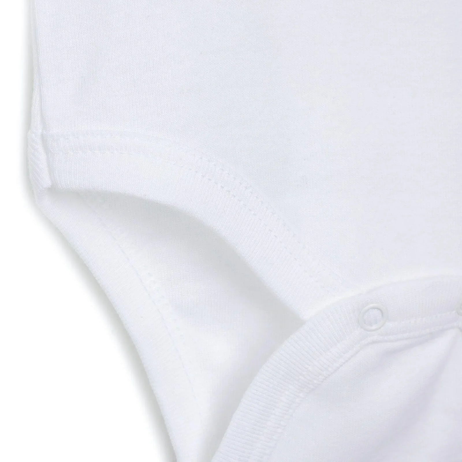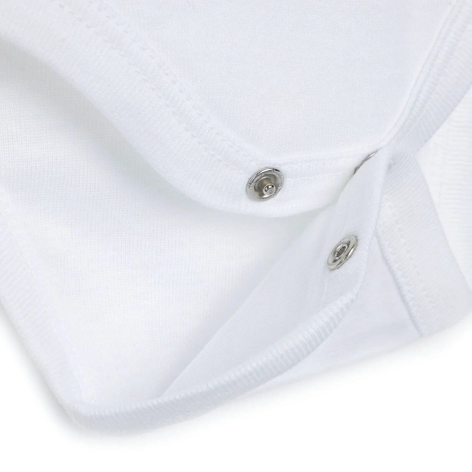 A lovely selection of white baby bodysuits that are both charming and useful. This lovely collection of 5 long sleeve bodysuits is the ideal addition to your child's wardrobe because it combines comfort and style in one adorable garment.