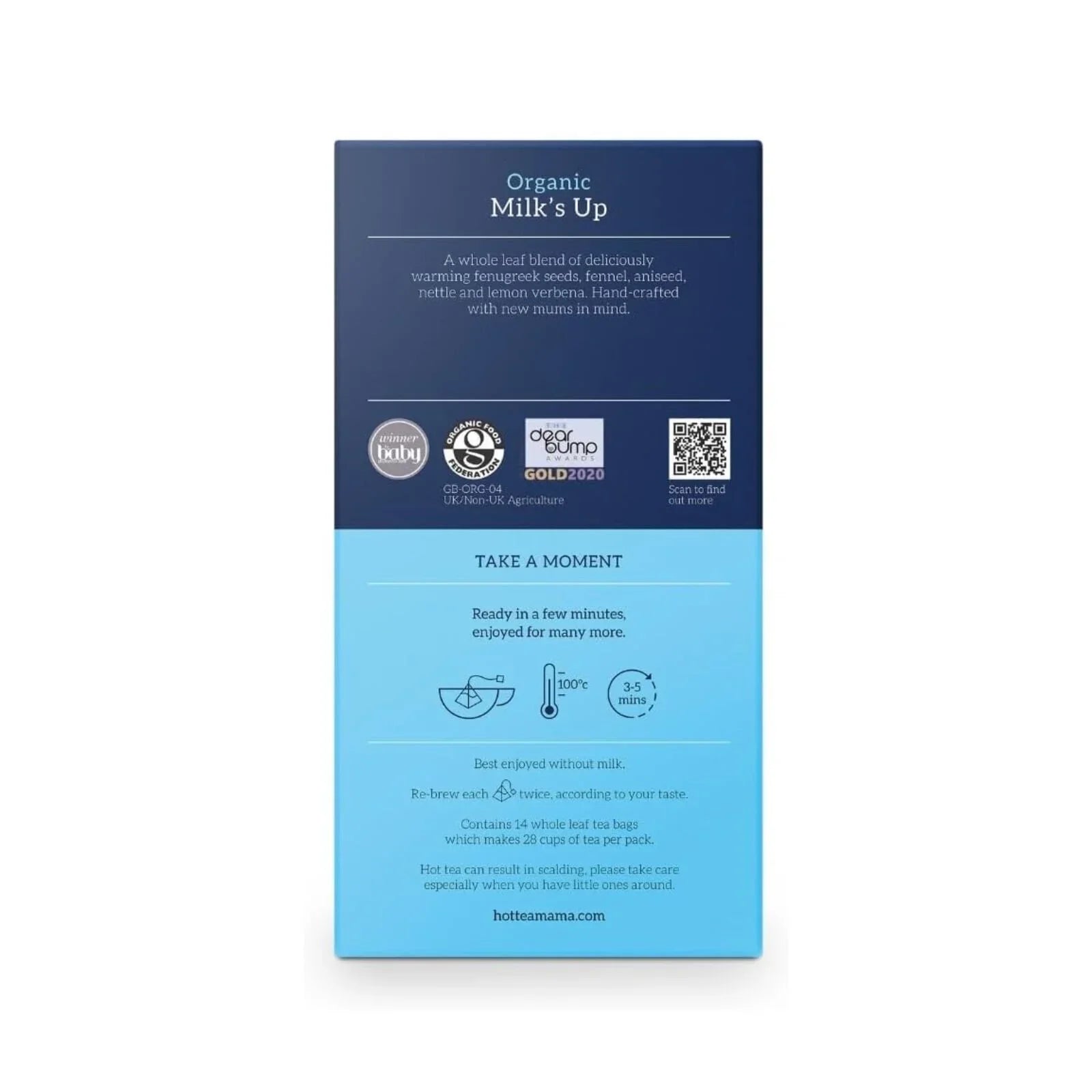 Support your breastfeeding journey naturally and deliciously with HotTea Mama Organic Milk’s Up. Made with 100% organic ingredients, this carefully crafted blend contains fenugreek, fennel, aniseed, nettle, and lemon verbena, known as galactagogue herbs that help support milk production. Completely caffeine-free, it won’t affect your sleep or your baby’s, making it perfect for daily consumption.