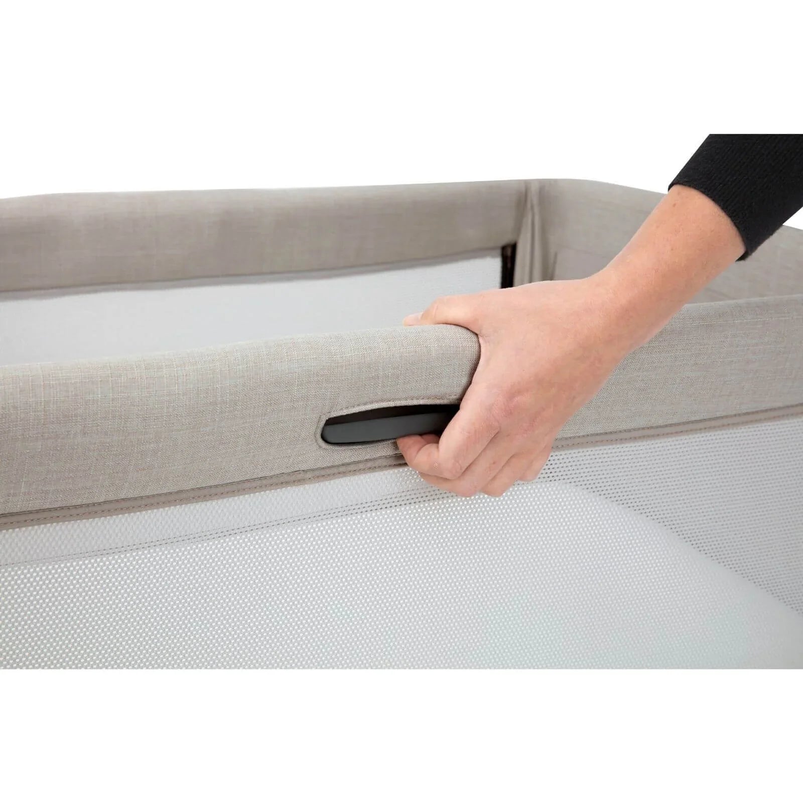 • Lift and lower the sliding side panel just one hand for easy access to your little one