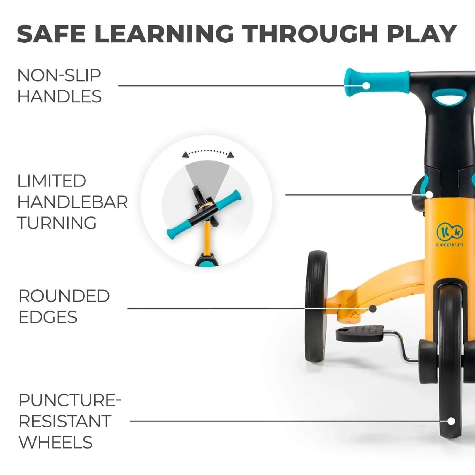 Thanks to its three-wheel construction, the 4TRIKE is stable and perfect for learning how to drive. It is created for safe riding in and out of the home.