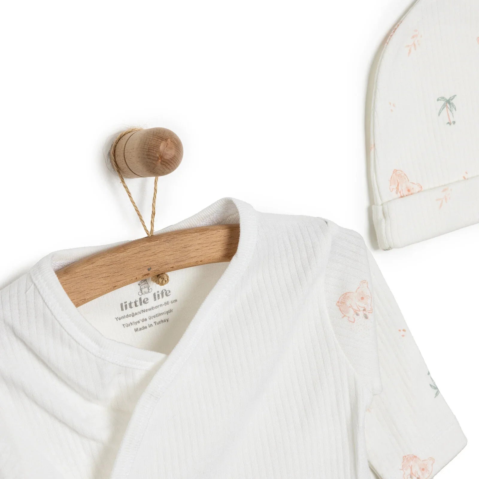 This 5-piece newborn hospital outfit is an ideal choice to ensure your baby's comfort and safety. With its cotton fabric, it provides comfort while keeping them warm with its long sleeves and booties style.