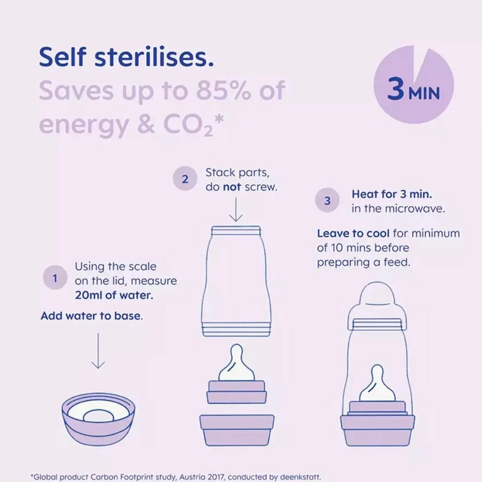 - Washing Instruction: Wash all parts thoroughly with warm, soapy water. Use a bottle brush or a soft sponge to clean the inside of the bottle, nipple, and other components. Pay special attention to the nipple, ensuring that any milk residue is completely removed. The MAM Easy Start Anti-Colic Bottle is dishwasher safe, but it is recommended to place the small parts in the top rack to prevent any damage. Ensure that the bottle and its components are securely placed to avoid them coming into contact with heating elements or other dishes.