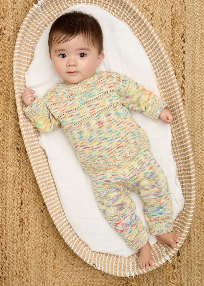 A timeless jumper to love and cherish season after season. Crafted from 100% Organic cotton, this beautifully soft baby jumper features classic 'pointelle' stitches and is made with a unique rainbow space-dyed yarn, developed exclusively by our founder Tracey, making it truly one-of-a-kind!