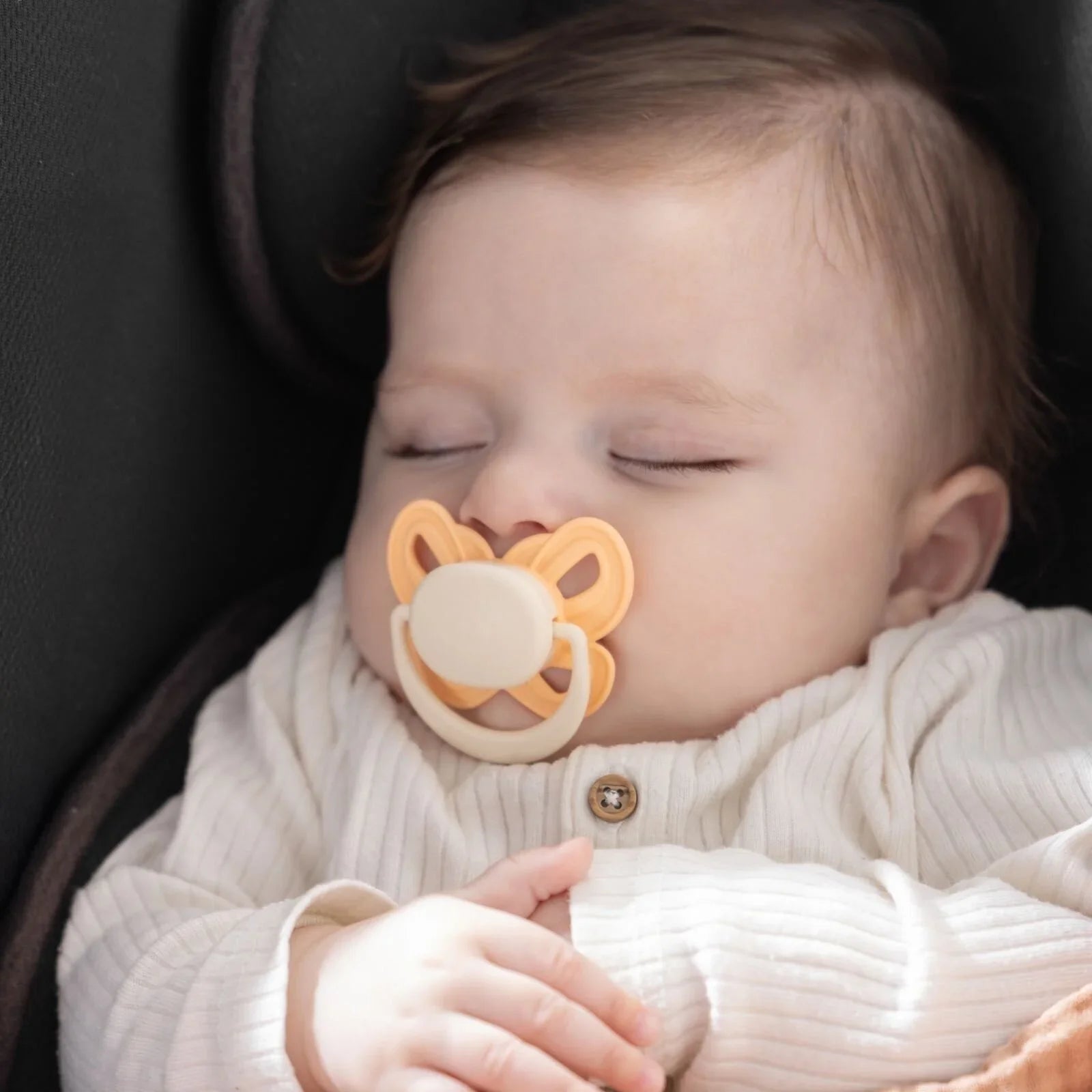 Mooma Clown & Butterfly Soothers 6–18 Months is a reliable soother set designed to support both your baby’s comfort and healthy oral development. The orthodontic teat adapts to the natural shape of the teeth and palate, helping to promote proper development. Large air holes and an air-channelled shield allow the skin to breathe, reducing the risk of irritation. Made from soft, premium-quality silicone, the soothers gently fit your baby’s mouth and face for everyday comfort.