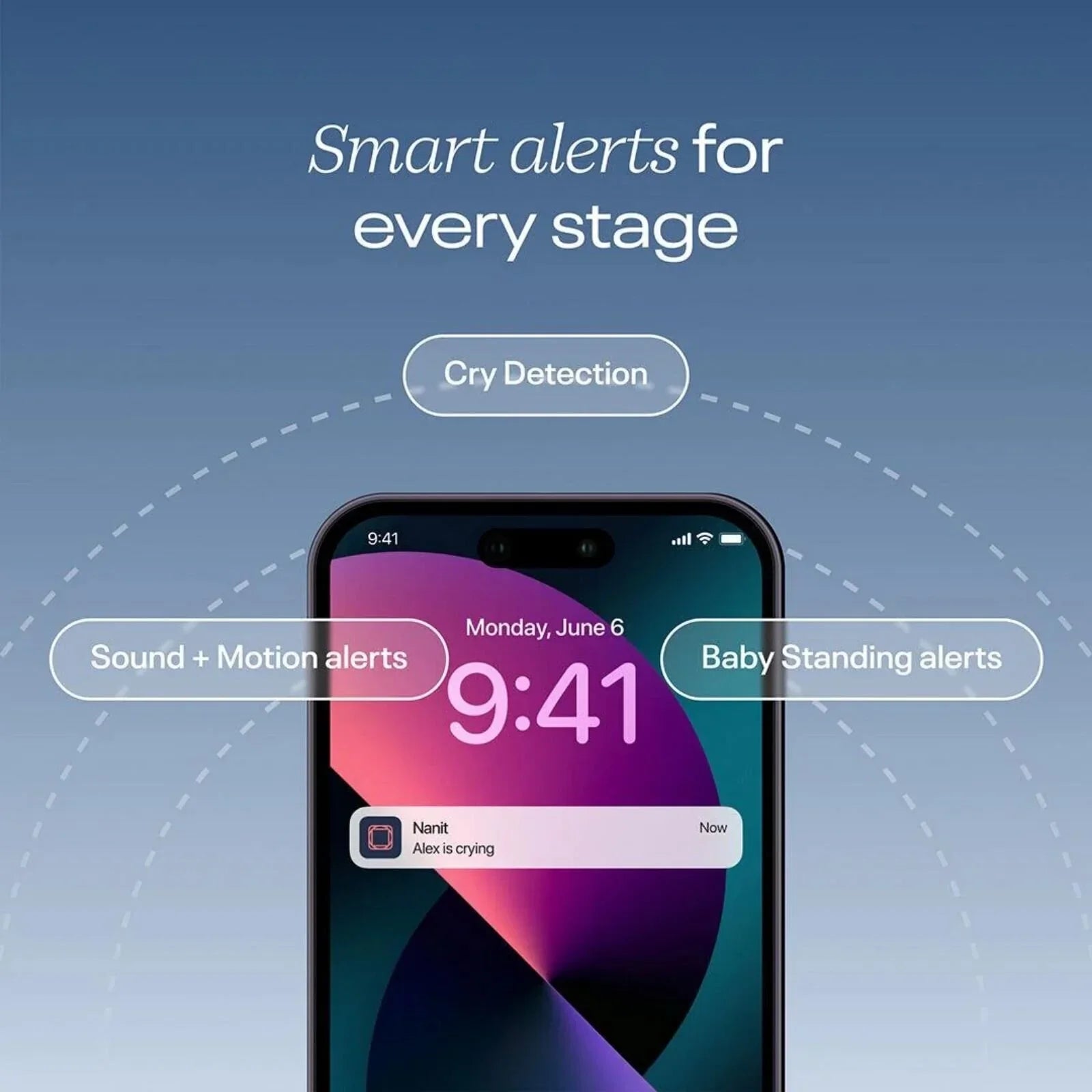 • Motion and cry detection send instant alerts when your baby needs attention.