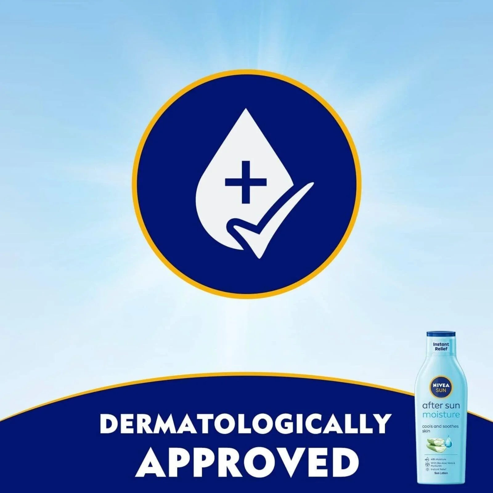 Nivea Sun Lotion After Sun Lotion is the perfect remedy for sun-exposed skin. This lotion provides intense hydration and helps to soothe and calm your skin after sun exposure. Enriched with natural ingredients, it ensures long-lasting moisture while its lightweight, non-greasy texture absorbs quickly. Ideal for daily use, trust in NIVEA's century-long skincare expertise to restore and refresh your skin, making it an essential part of your after-sun care routine.