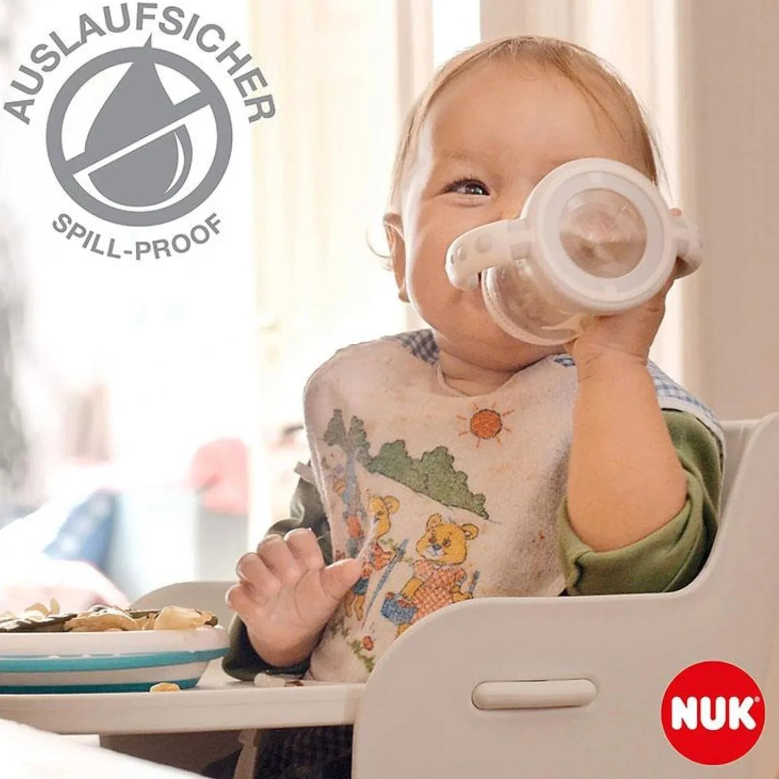 Interchangeable with all NUK First Choice+ bottles and teats. Easy to grip: soft ergonomic handles allow babies to hold the sippy cups themselves.