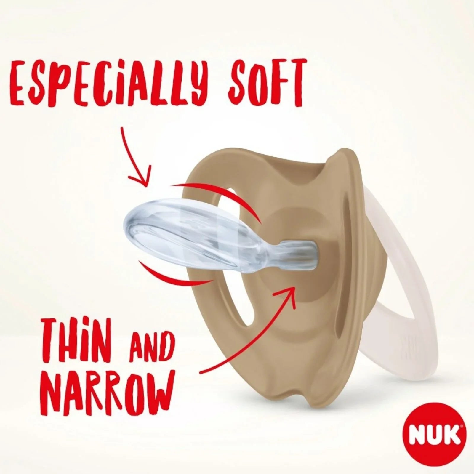 · Original NUK shape: round on top, flat underneath for natural sucking movements