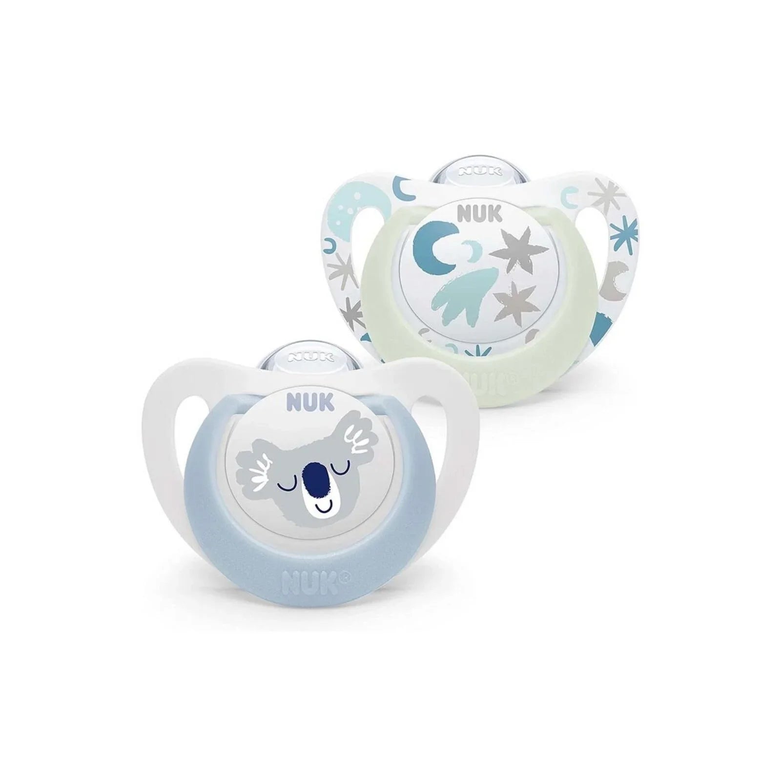 NUK Star Day & Night Soother 0-6 months Pack of 2 - Blue