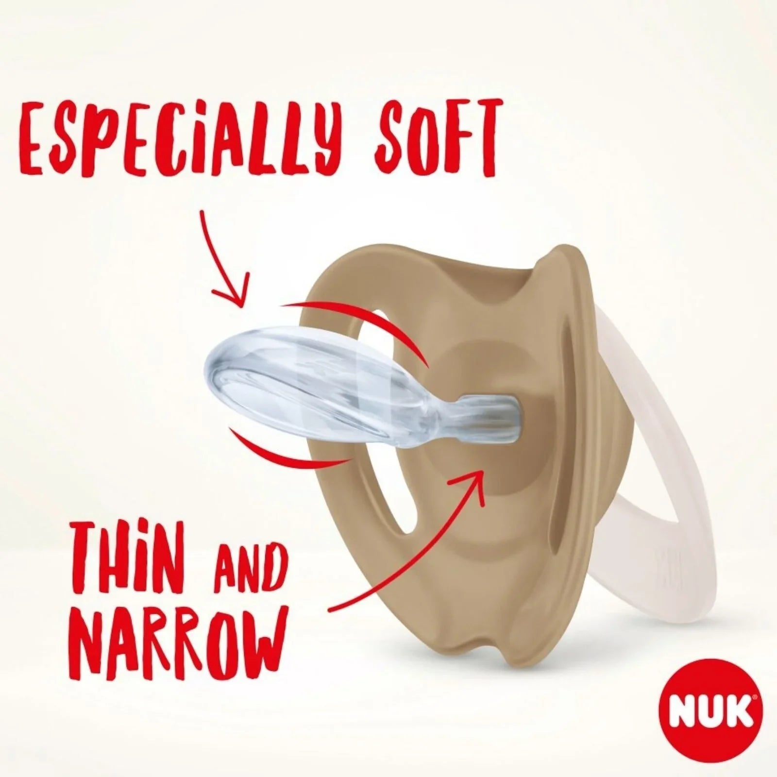 · Original NUK shape: round on top, flat underneath for natural sucking movements
