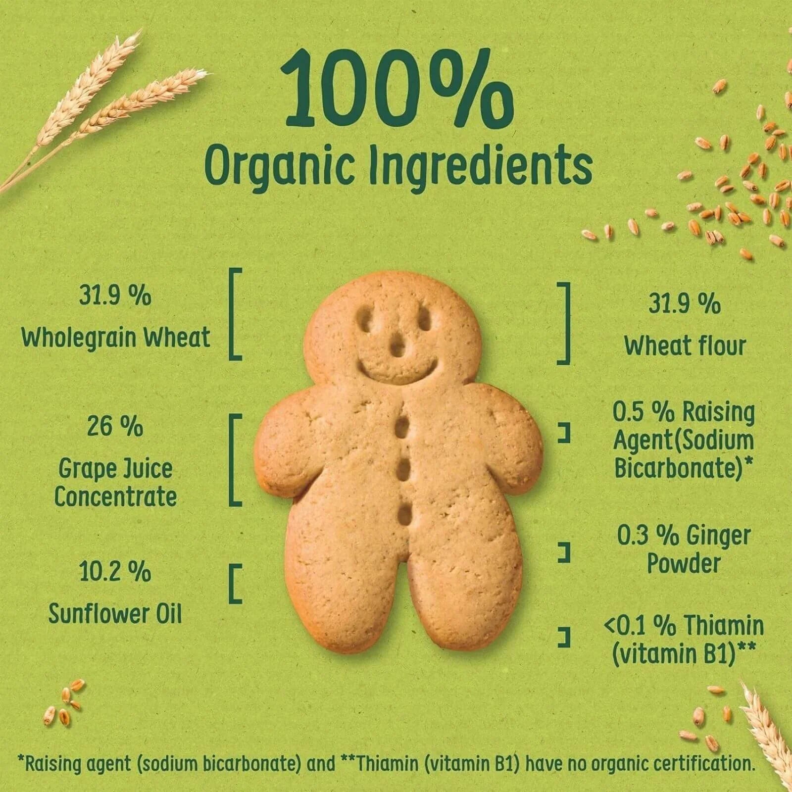 The scrummy mini gingerbread biscuits are the perfect snack for toddlers on the go. Made with organic wholegrain wheat flour mixed with grape juice.