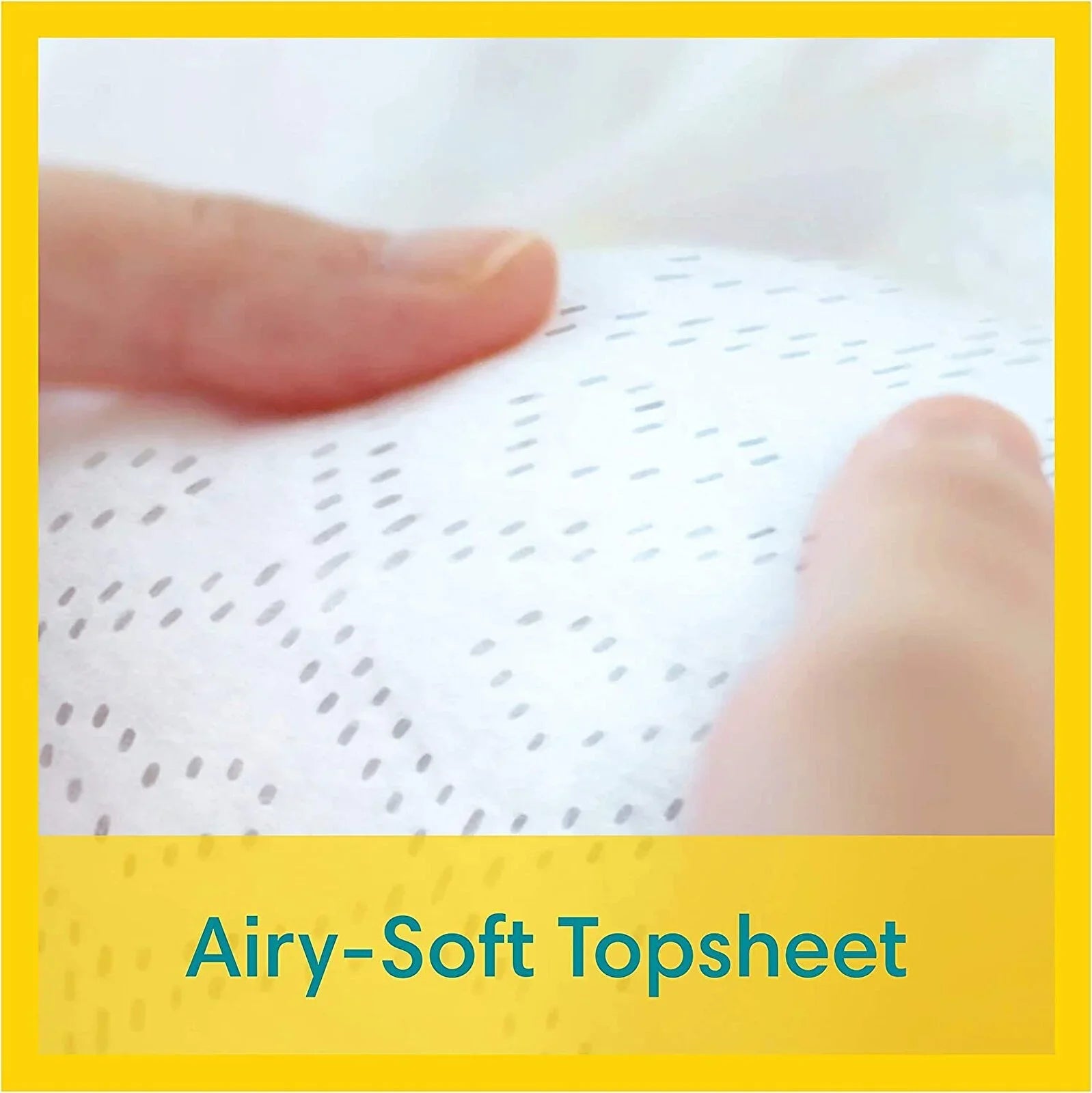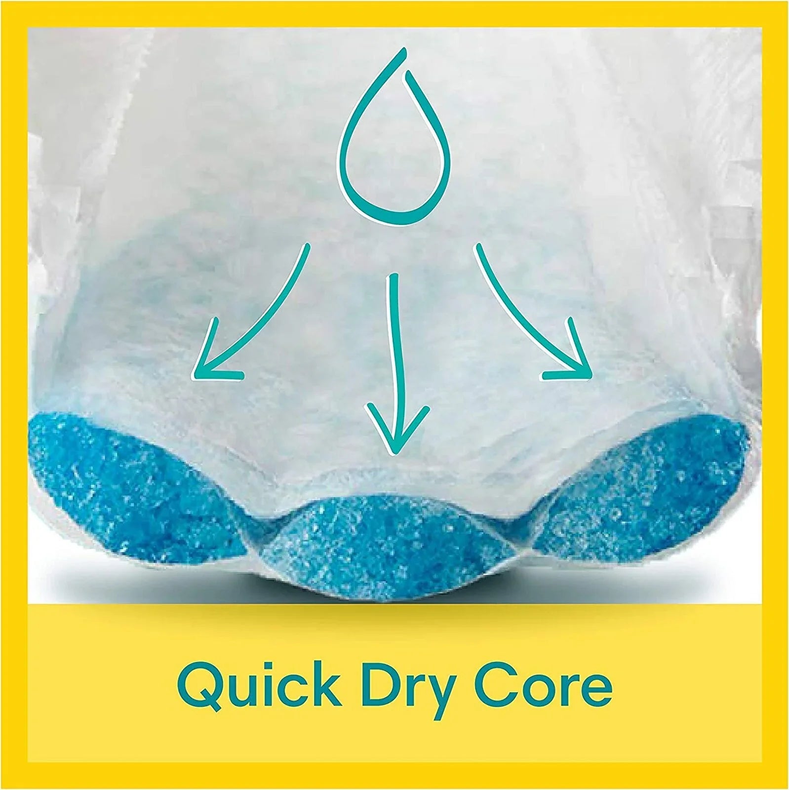 Detail: Exclusive Topsheet provides Pampers' softest comfort, while pulling wetness and mess away. Quick Dry Core absorbs liquid instantly to keep your baby's skin dry and protected. Super Soft Stretchy-Wings adapt to your baby's tummy for a gentle snug fit. Double Leg Cuffs gently adapt around the baby's legs protecting from leaks. Shape protects your baby's delicate tummy with a gentle contoured fit (available in sizes 0, 1, 2). Wetness Indicator lets you know when it might be time for a change.