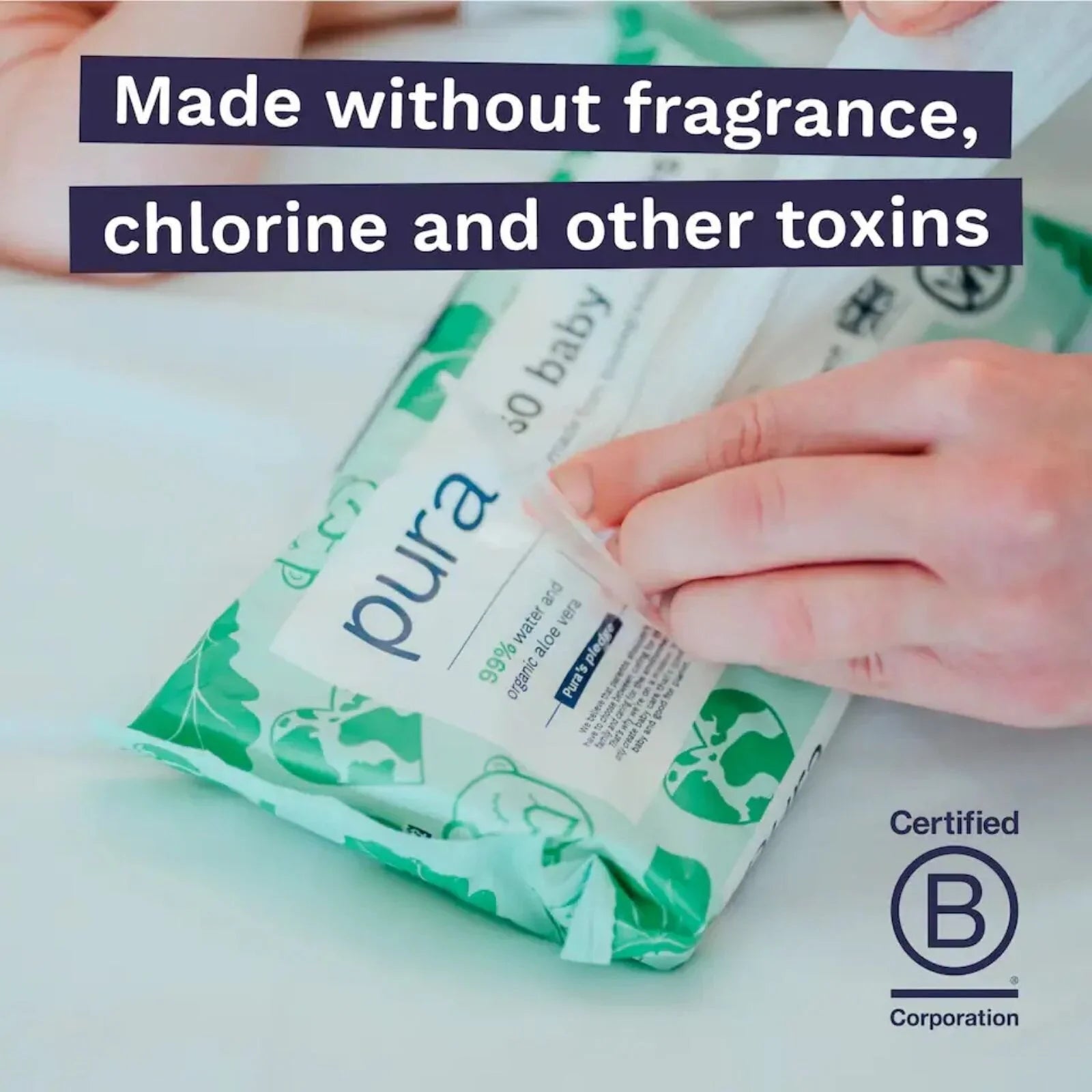 Pura Wipes are one of the purest and safest choices for your baby’s sensitive skin. Made with 99% water and organic aloe vera, they gently cleanse without the use of fragrance, alcohol, parabens or chlorine. These 100% plastic-free wipes are crafted from biodegradable plant fibres and are certified by Allergy UK, the British Skin Foundation and EWG. A truly clean wipe for your baby.