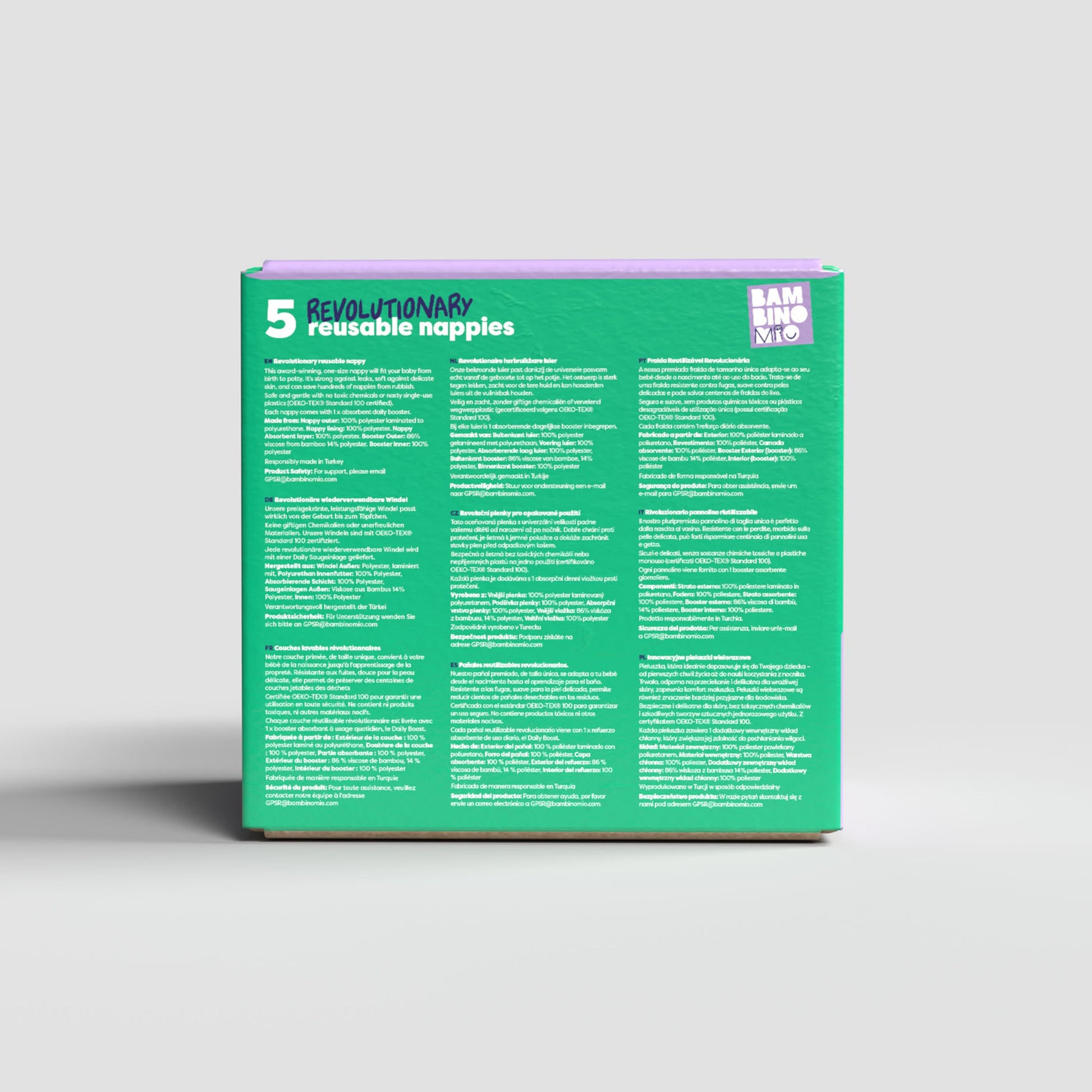 Build your Reusable Nappy stash with our 5 Nappy Bundle. Featuring five award-winning Revolutionary Reusable Nappies in every design from the collection, this great-value set is designed to grow with your baby from newborn to potty.