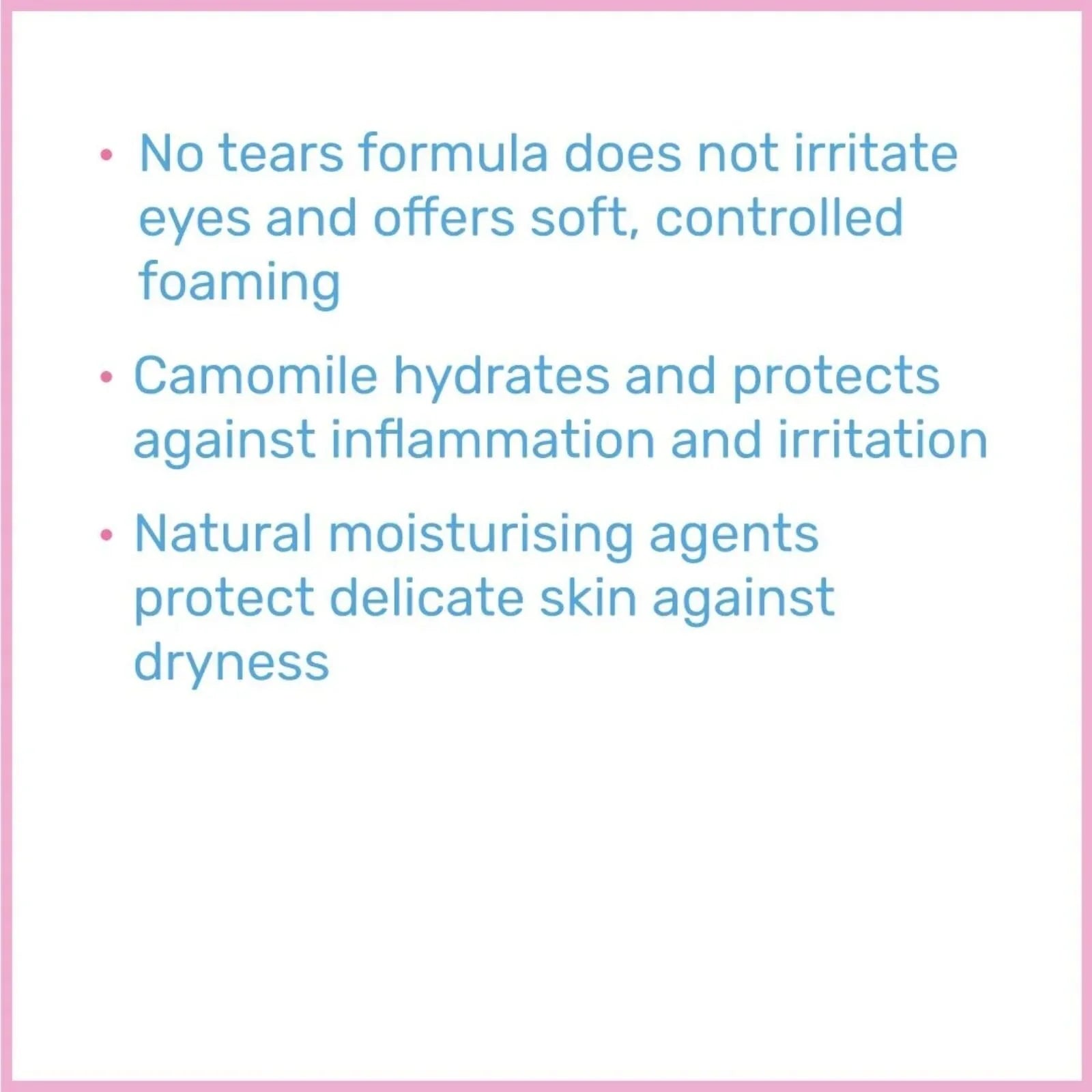 • Moisturising: Enriched with allantoin and chamomile to cleanse without drying and maintain moisture balance.