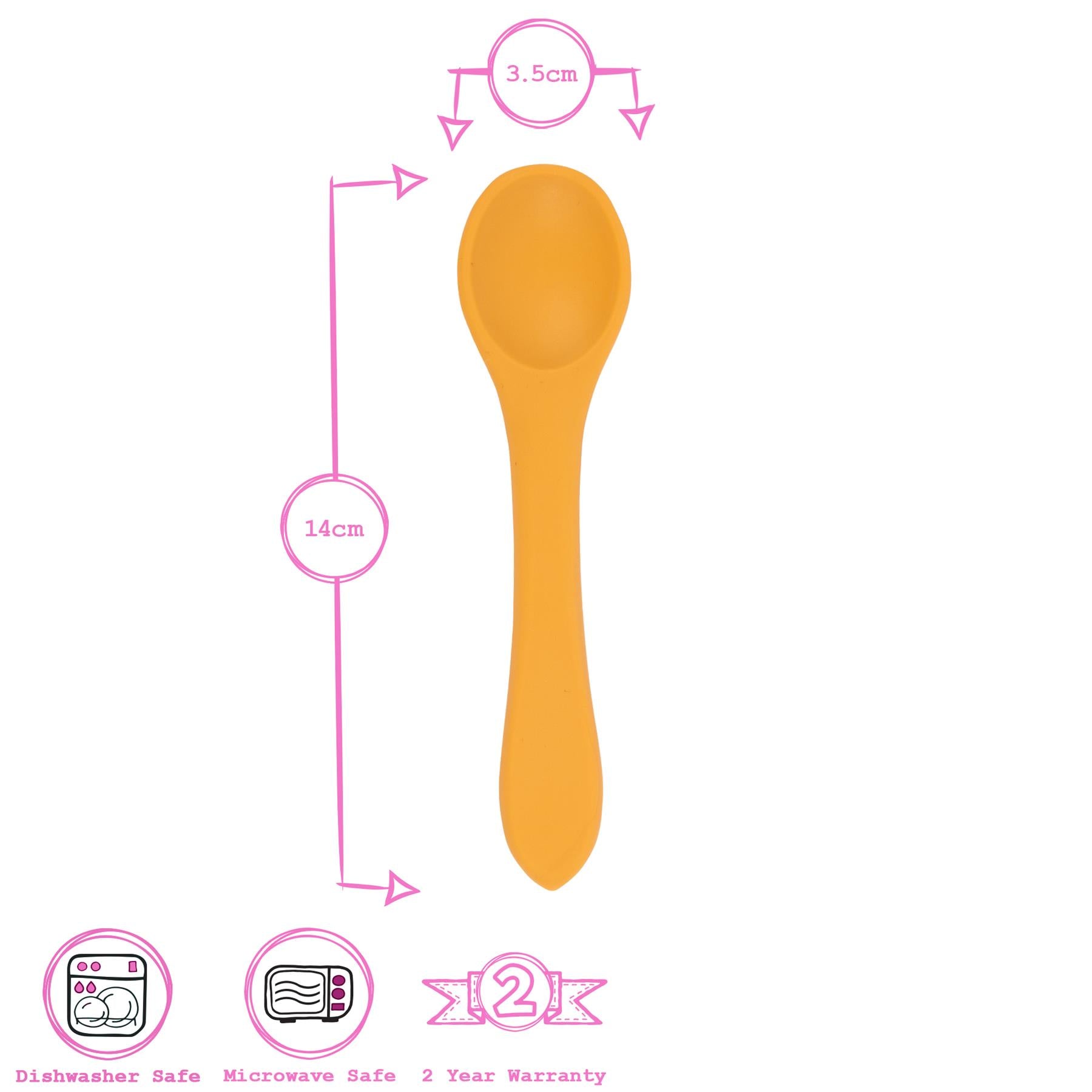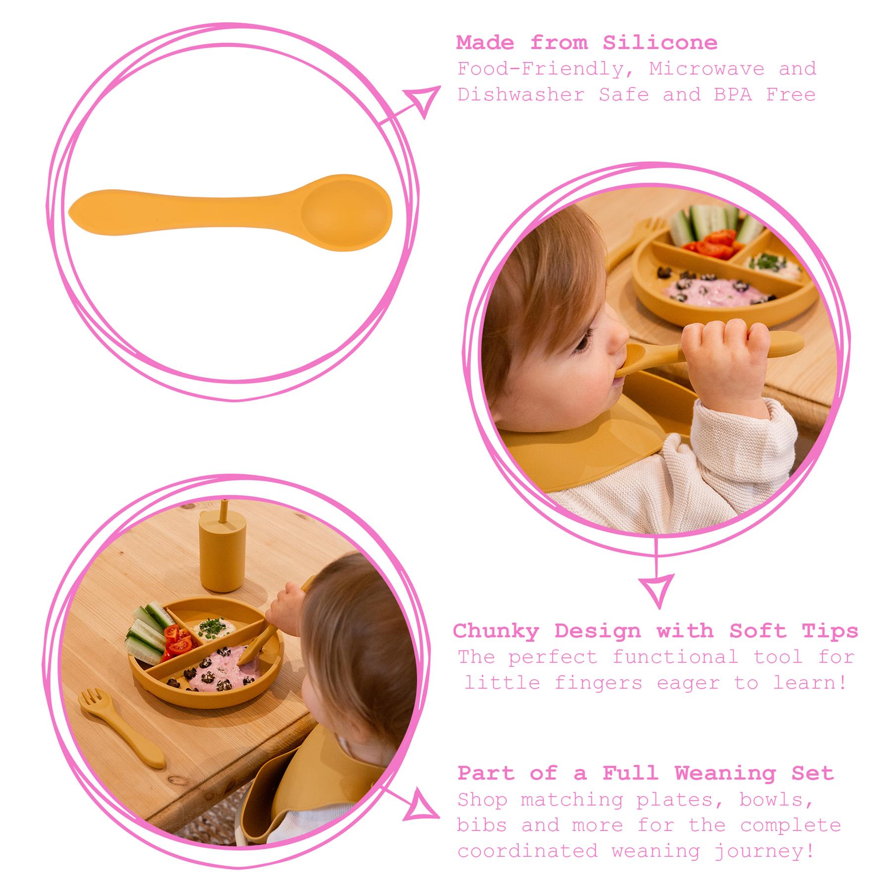 This sturdy spoon features a chunky handle perfectly designed to be grasped by hungry little fingers, paired with a soft tip that's gentle on gums.