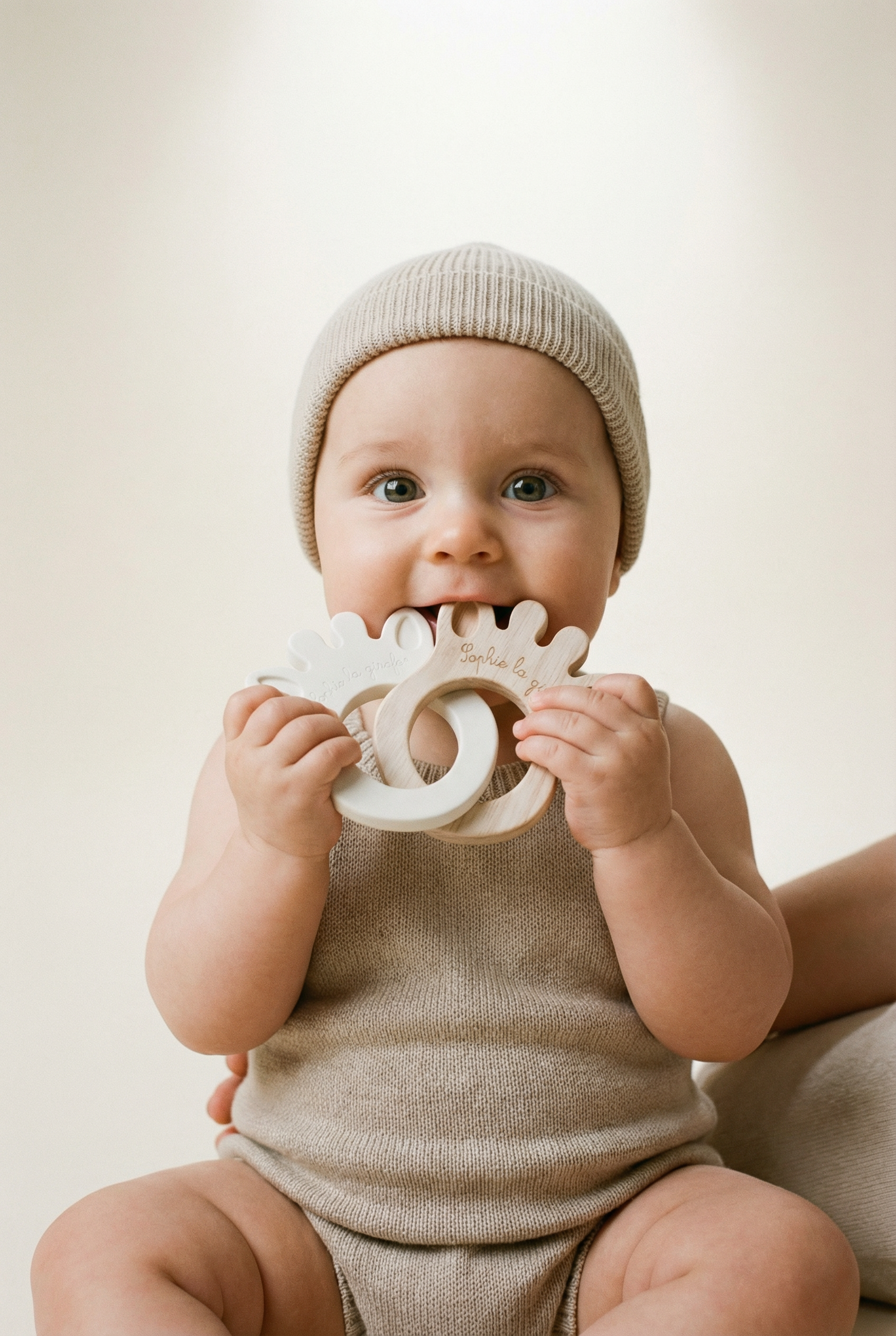 Each ring offers a different firmness to gently soothe sore gums and provide sensory relief during teething. Naturally safe and lightweight, they are easy for little hands to grasp and chew, supporting fine motor development and oral comfort.