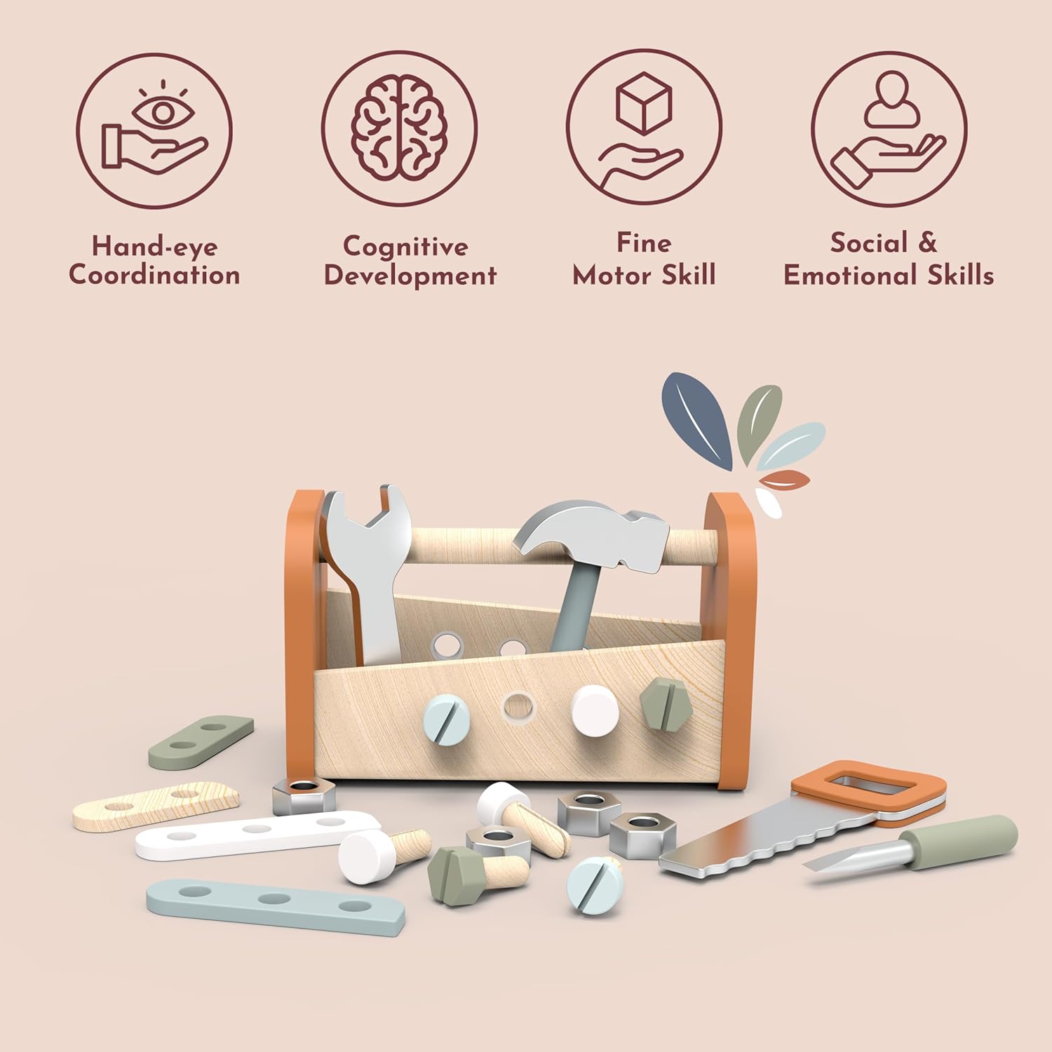 Crafted from durable, certified wood, this multifunctional toy is built to last while providing endless opportunities for role play. The 2-in-1 design allows children to carry their tools neatly inside the toolbox, then transform it into a sturdy workbench for exciting building projects. With a hammer, saw, screwdriver, wrench, screws, and nails included, little builders can enjoy hours of interactive, educational play. The compact size makes it ideal for small spaces, travel, or as a thoughtful gift for curious children aged 3 and above.