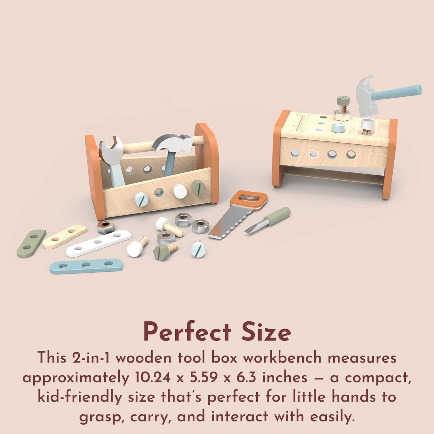 Wooden 2-in-1 Toolbox & Workbench with Accessories – Compact DIY Playset for Kids