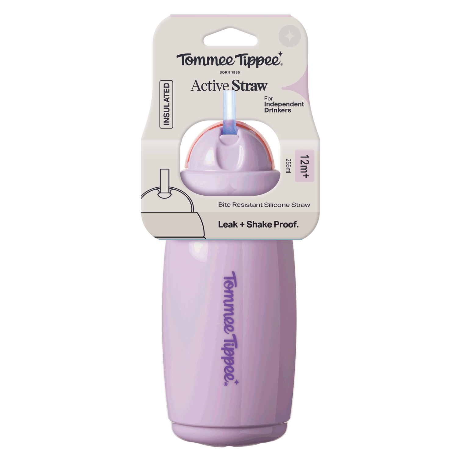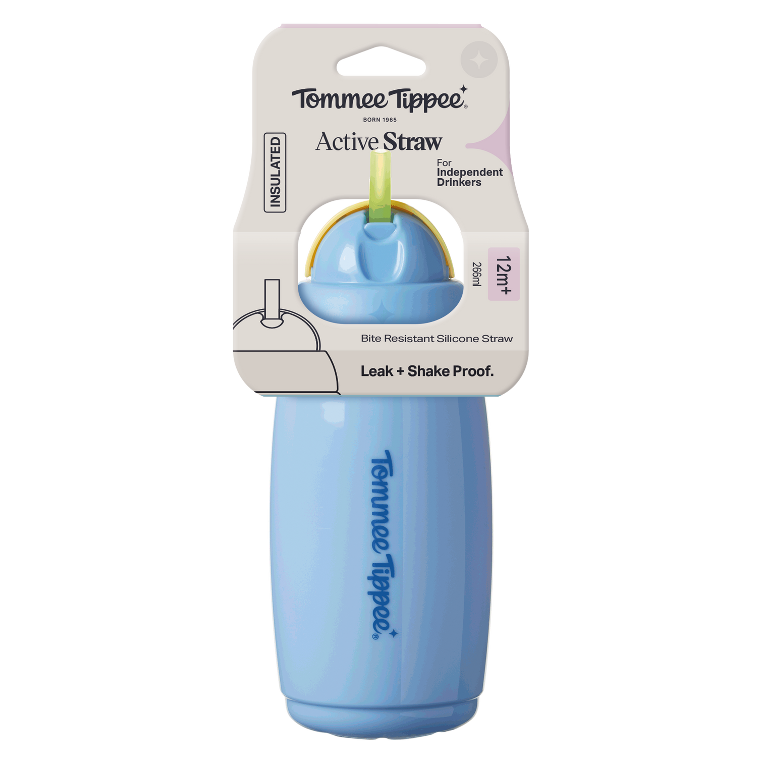Tommee Tippee Insulated Straw Bottle - 12M+ (NEW Assorted Designs)