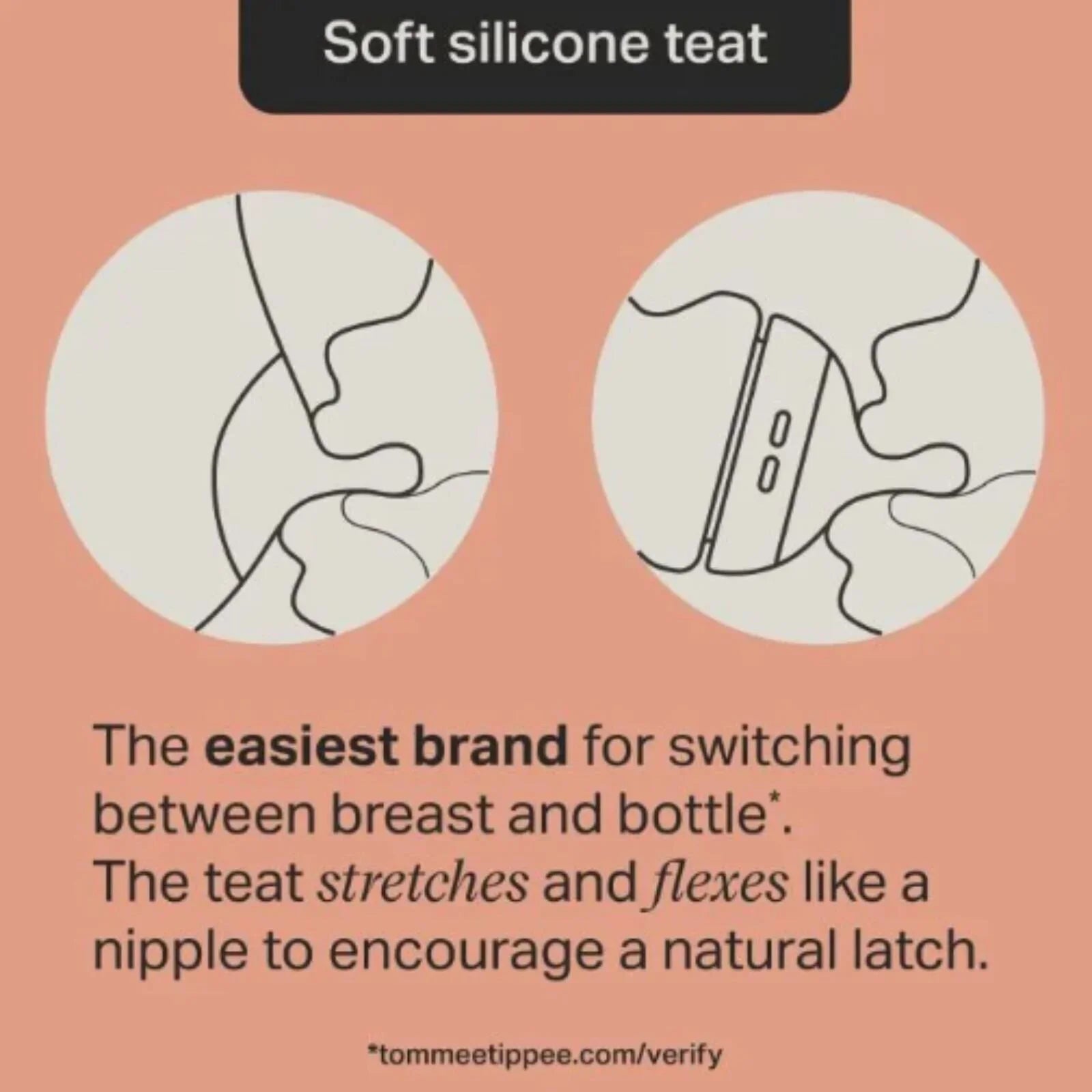 • Soft and flexible silicone teat mimics the natural movement and feel of mum’s breast during feeding.