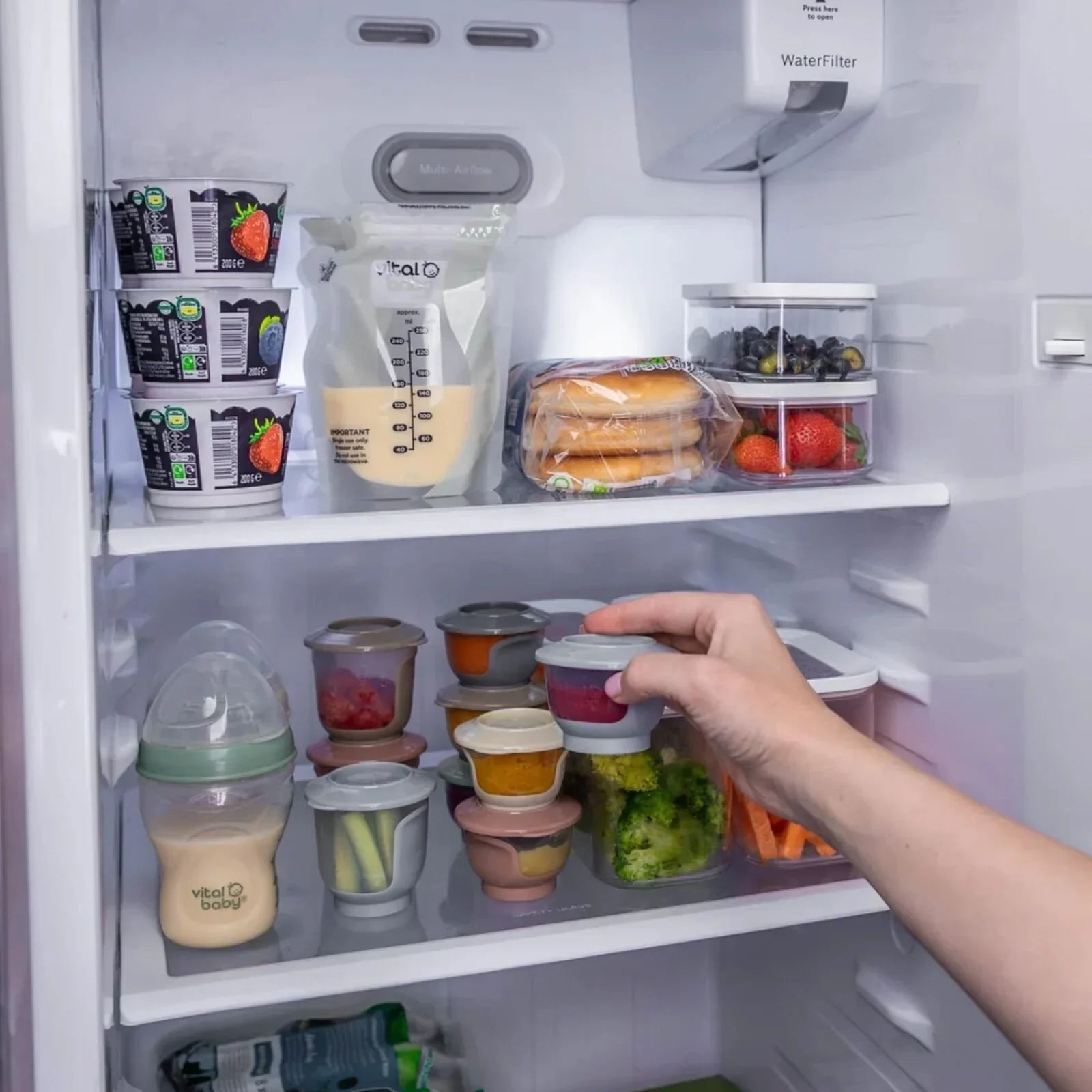 Vital Baby Nourish Store & Wean Pots are designed to make the weaning journey practical and organised. With a 120ml capacity, they allow you to safely store homemade baby food, purées or snacks. The soft base and sides make it easy to pop out frozen portions, heat them in the microwave, or feed directly from the pot after defrosting. The leakproof lids keep food fresh and secure during storage or travel. Perfect for use both at home and on the go, they are an essential helper for every parent.